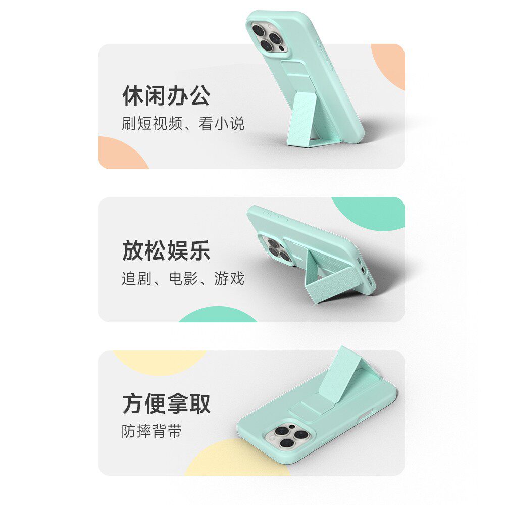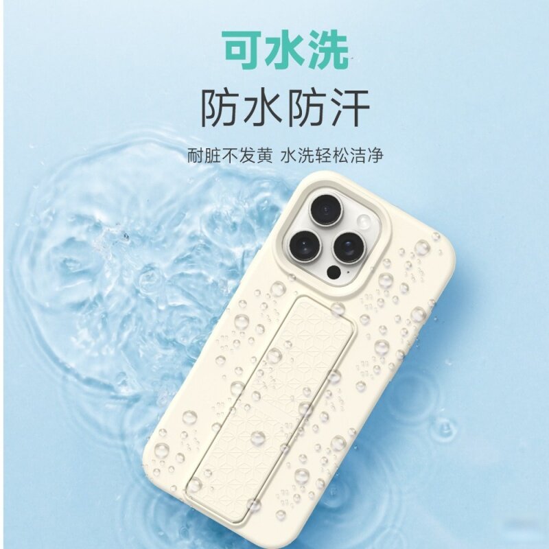 折叠腕带支架适用苹果17promax手机壳方便追剧iPhone16ProMax纯色防指纹14pm肤感15可水洗13防摔12保护套大孔