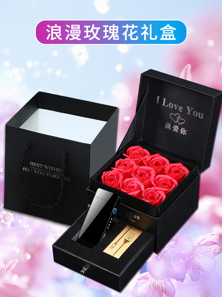 311线报网描述:双电弧防风 浪漫玫瑰花礼盒包装 USB快充电