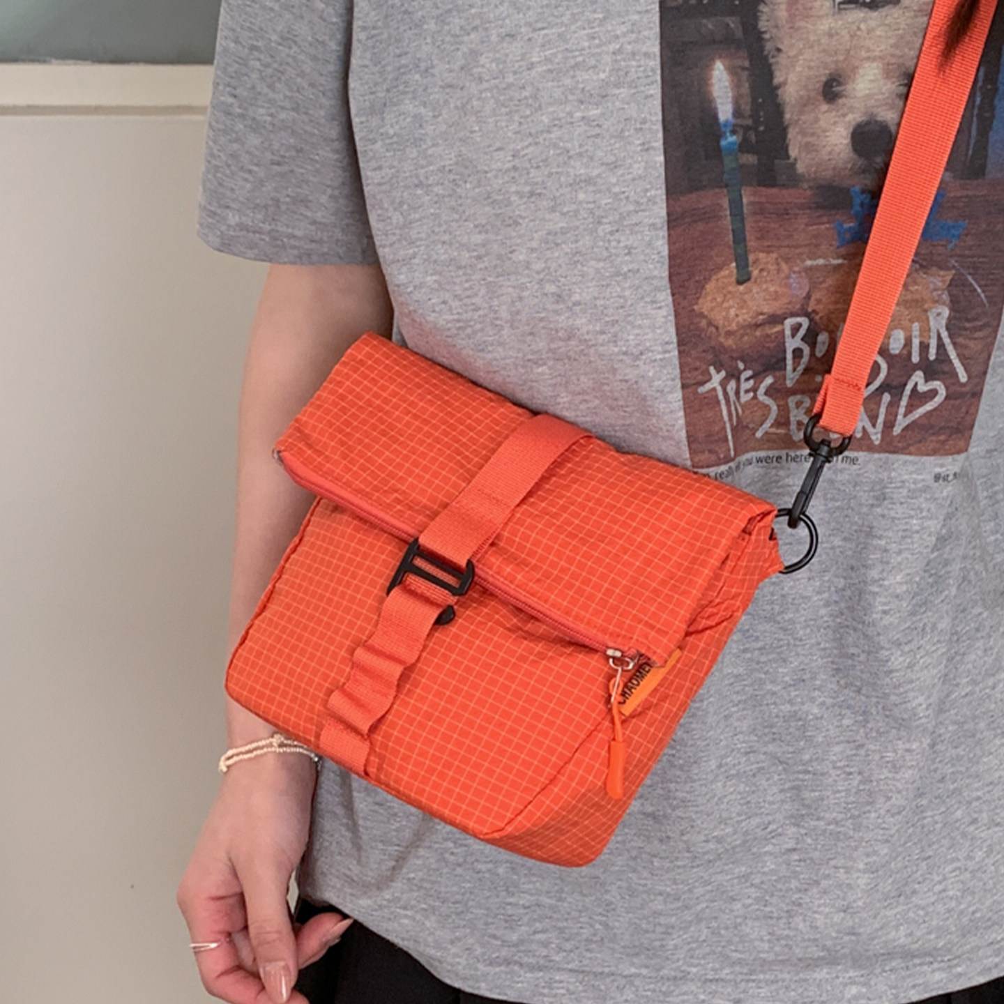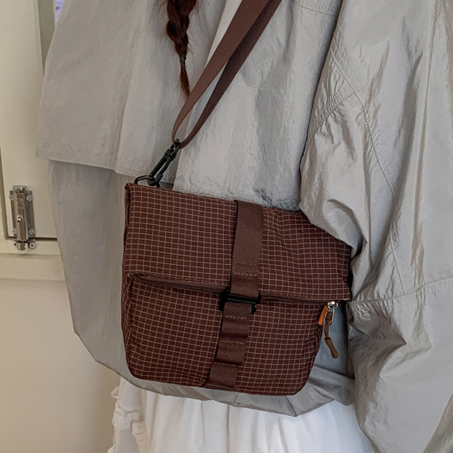 格子包包女款2026新款春季时尚轻便休闲百搭单肩包斜挎小包水桶包