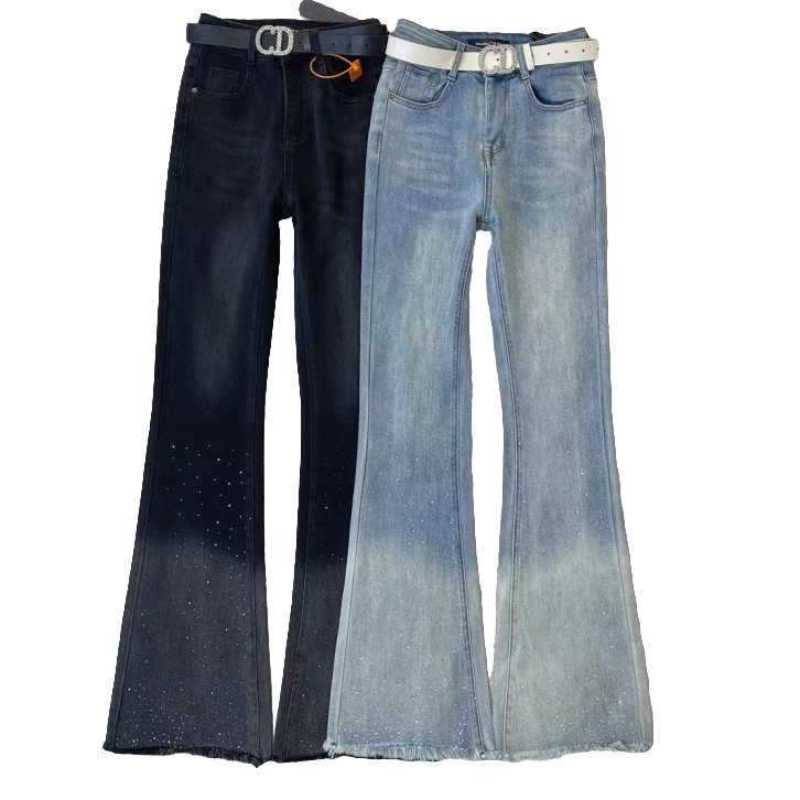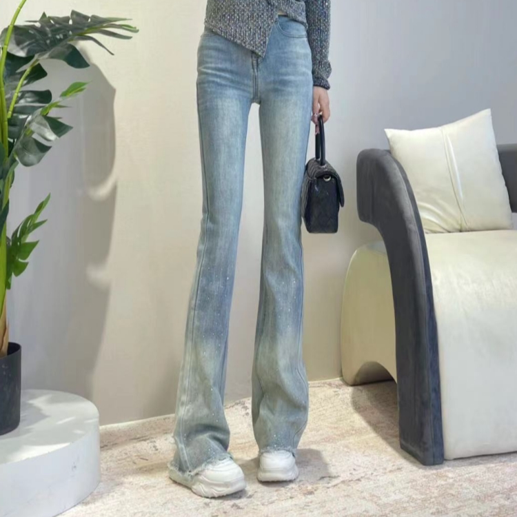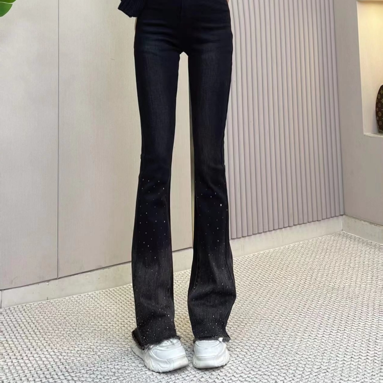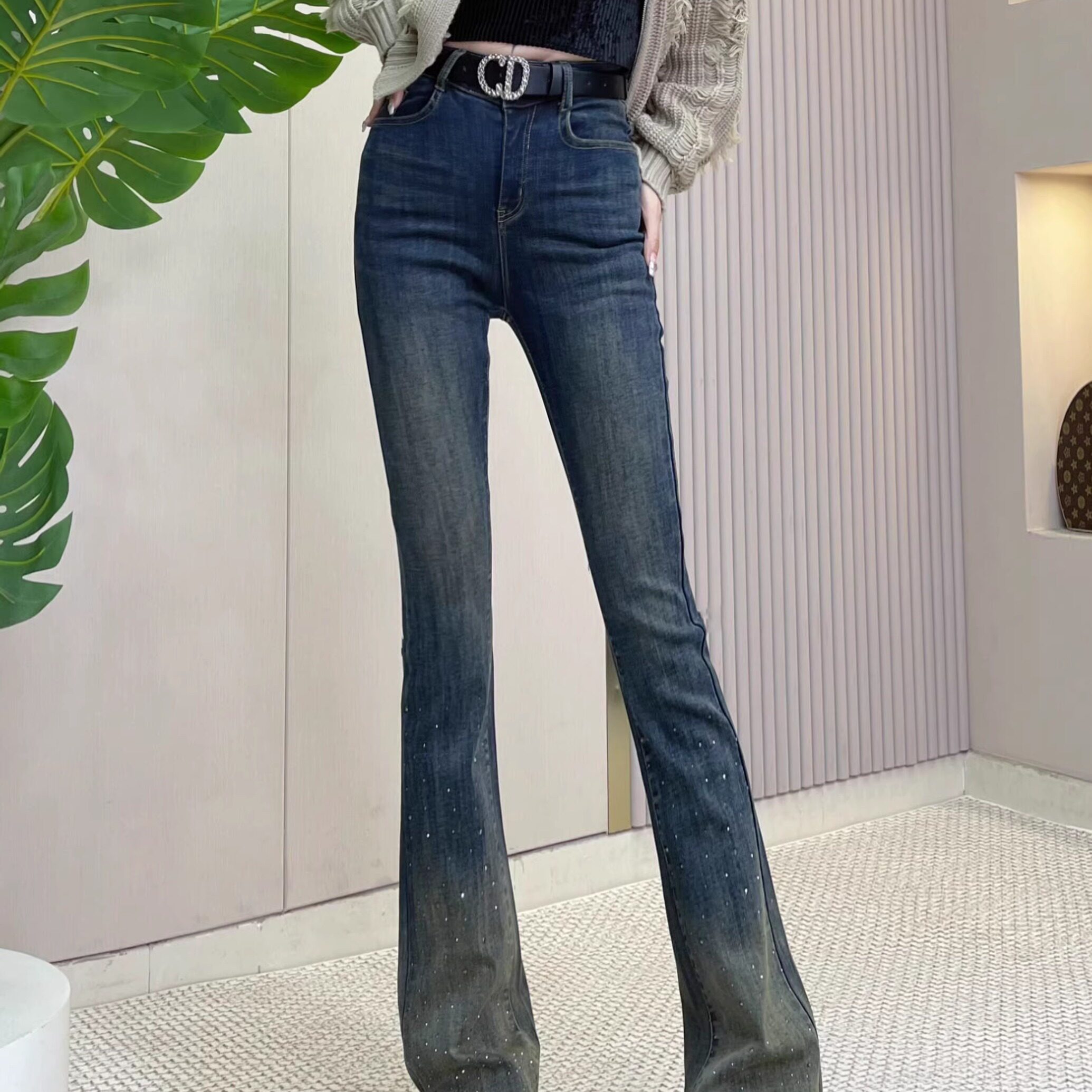 高档镶钻牛仔微喇裤女款2026春季新款气质百搭弹力高腰修身裤子