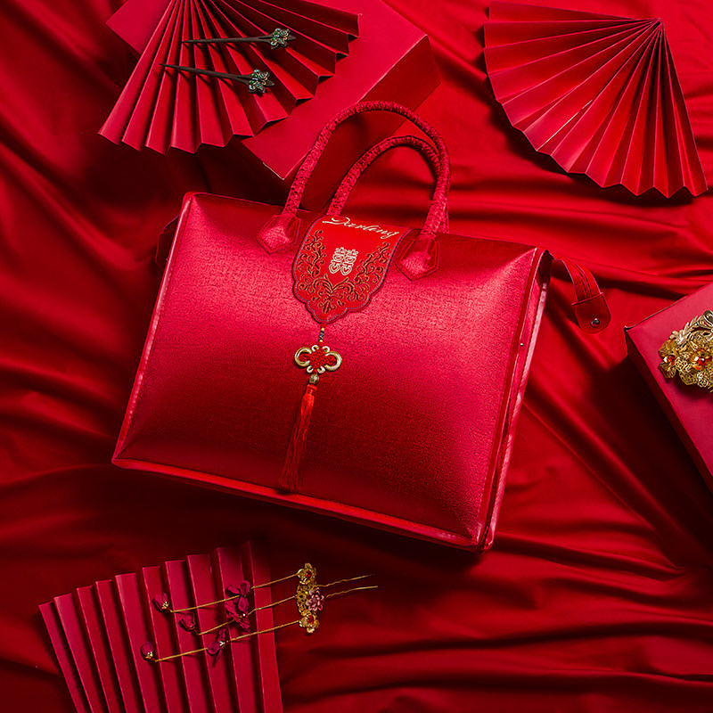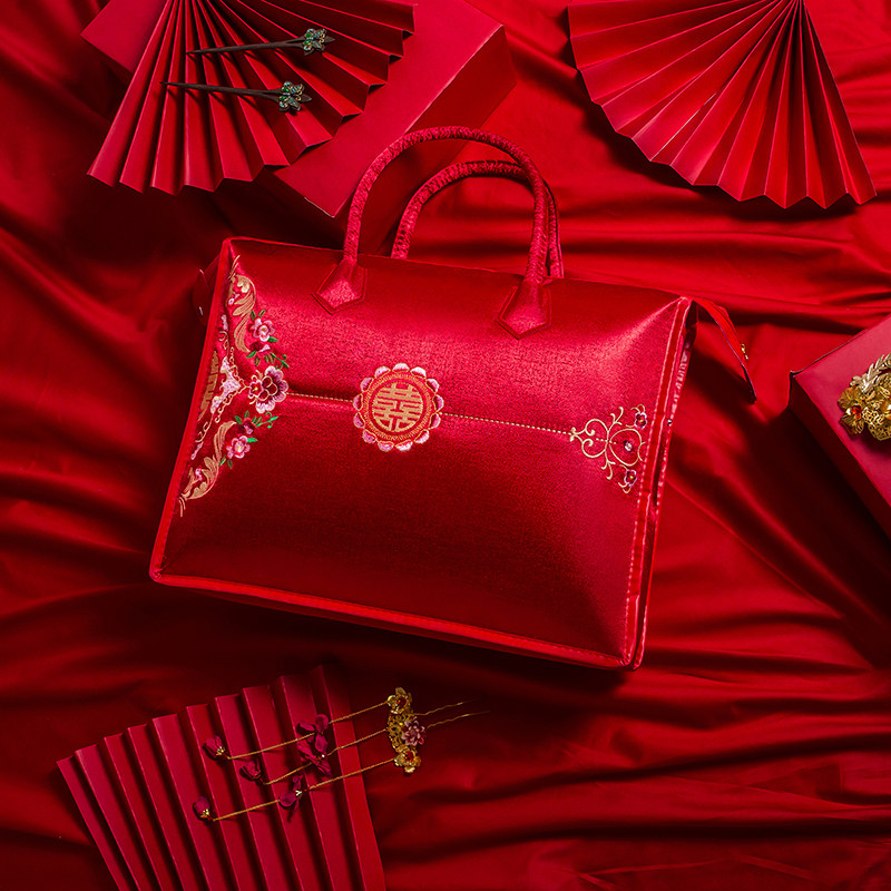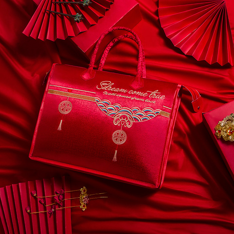 结婚四件套包装袋冬夏凉被袋套件收纳红色牛津布手提喜被陪嫁刺绣