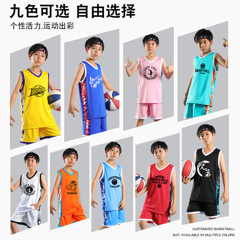 桔色篮球衣男生套装女童定制夏季中小学生篮球运动训练服比赛球衣
