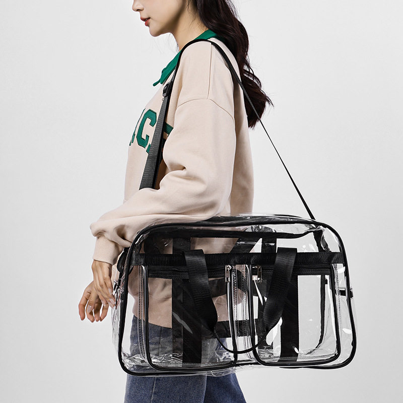 跨境pvc透明斜挎包轻便大容量托特包时尚个性全透防水健身旅行包