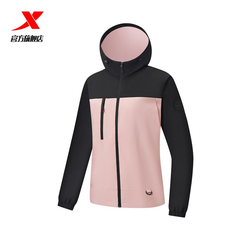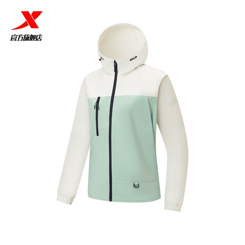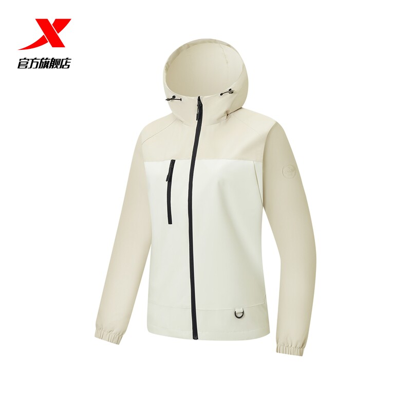 特步连帽休闲运动外套女防风2026春季新款夹克风衣官方旗舰店正品