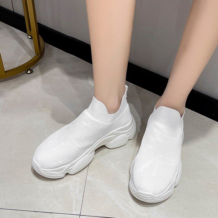 懒人袜子鞋女2026年春季新款厚底百搭运动鞋飞织透气一脚蹬休闲鞋