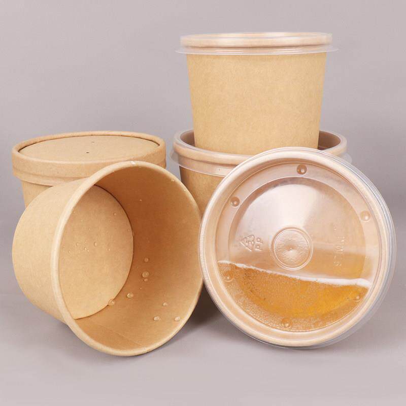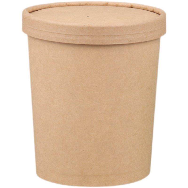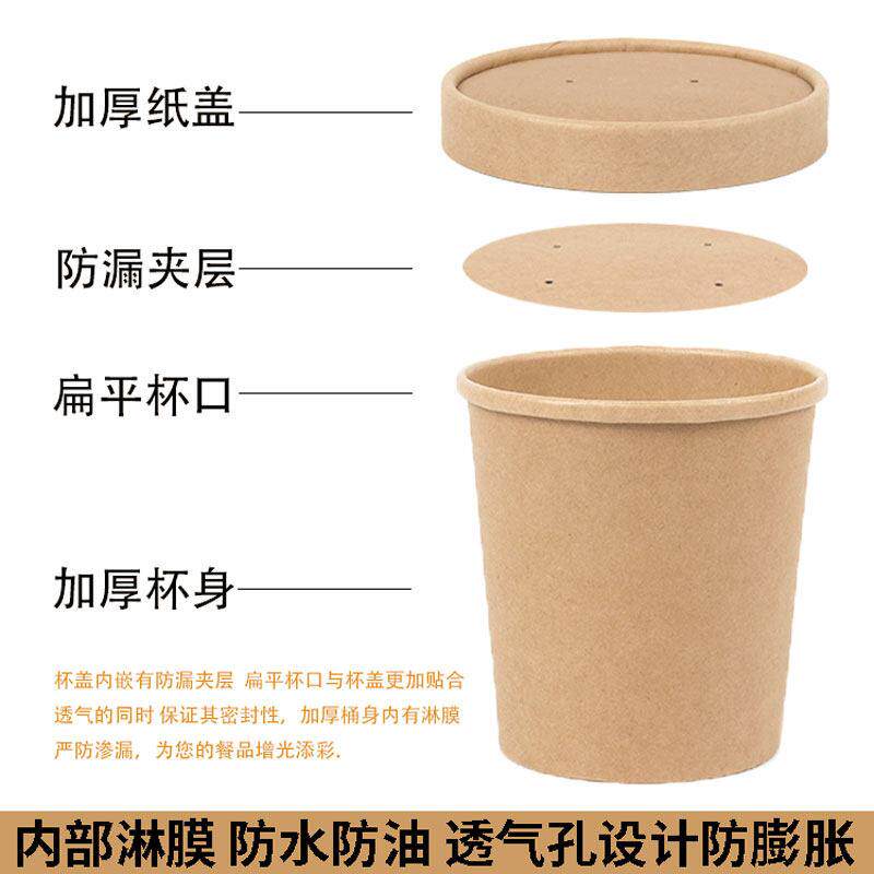 一次性纸碗圆形打包盒牛皮纸汤碗粥外送高锅带盖子甜品碗快餐盒汤