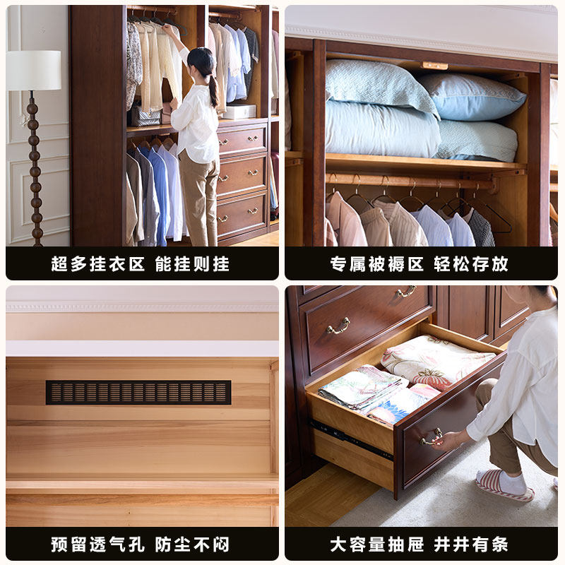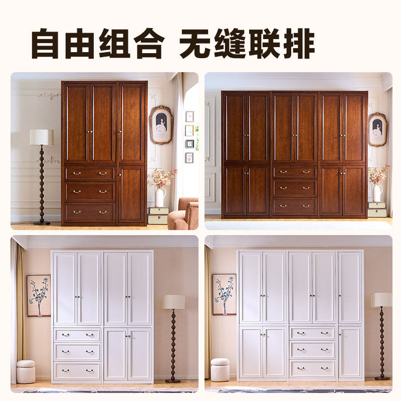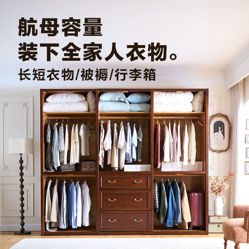 和年美家美式全实木衣柜家用卧室结实耐用挂衣柜樱桃木定制大衣橱