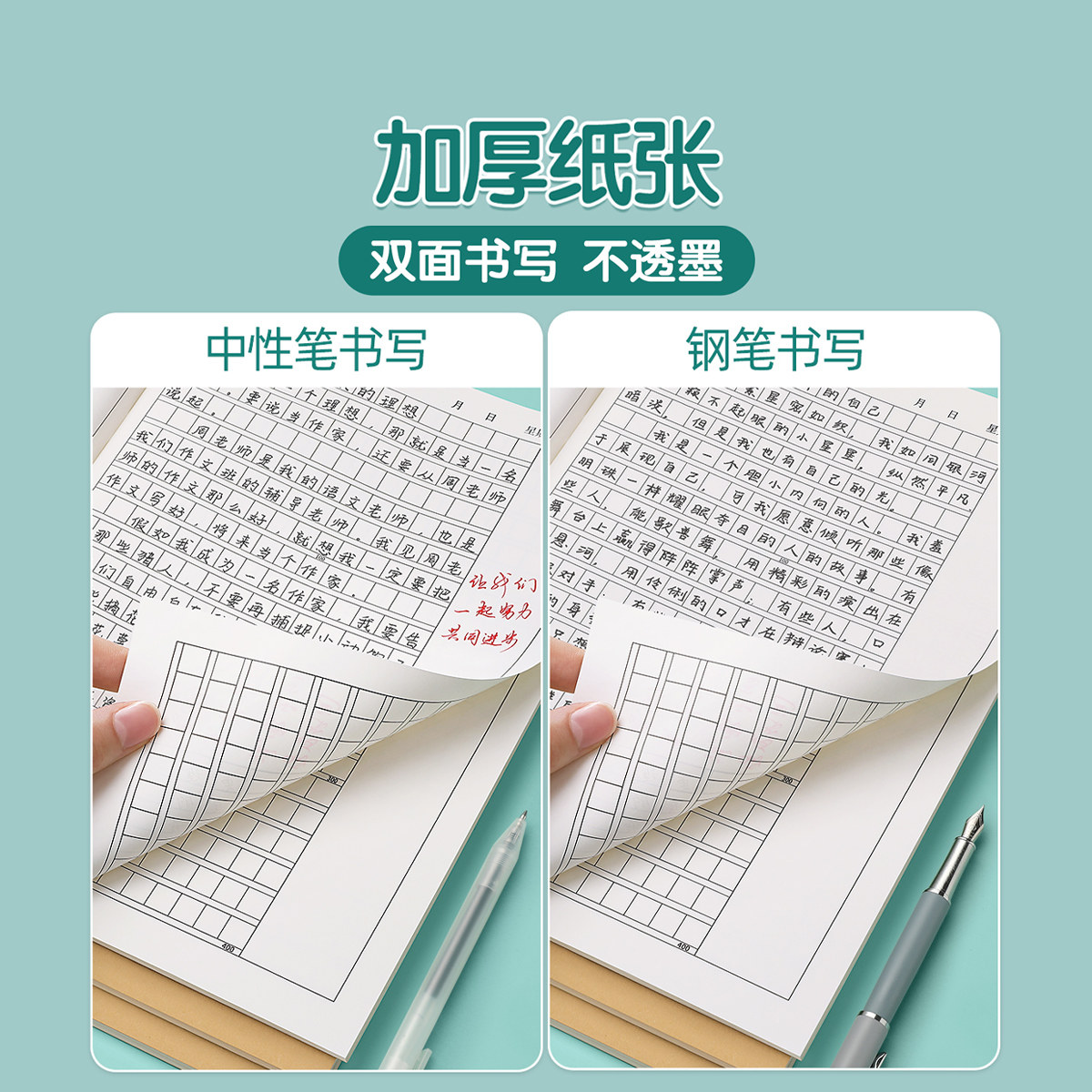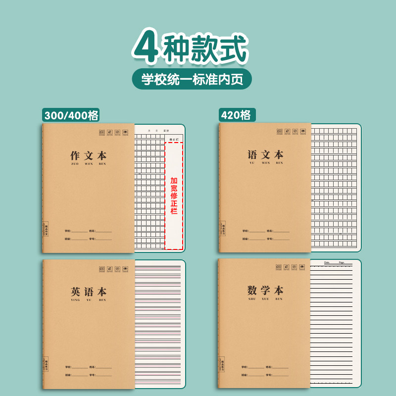 作文本初中生专用16k本子小学生作业本400格300格作文薄二三四五年六年级加厚数学练习牛皮纸方格本标准学校