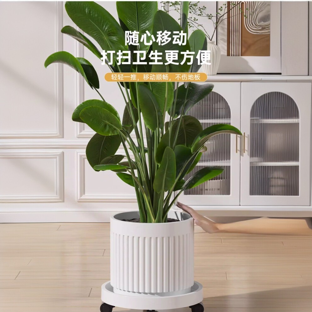 花盆托盘带轮底座透气可移动加厚圆形垫高塑料底托滑轮万向轮方形