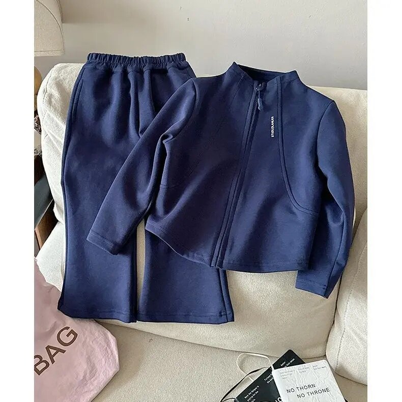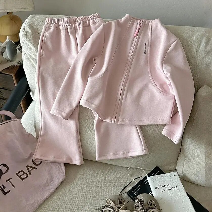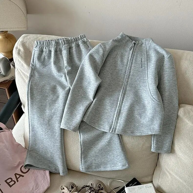 女童春秋款卫衣套装2026女宝宝韩版拉链短款外套儿童喇叭裤两件套