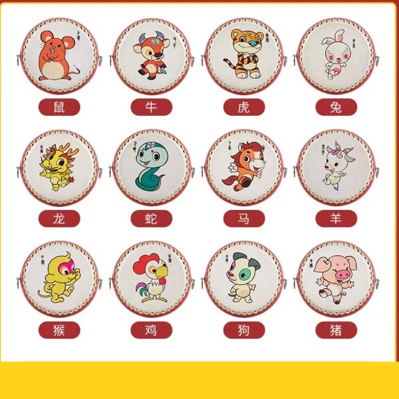 牛皮鼓小鼓儿童鼓堂鼓幼儿园打击乐器玩具十二生肖手敲鼓手打大鼓