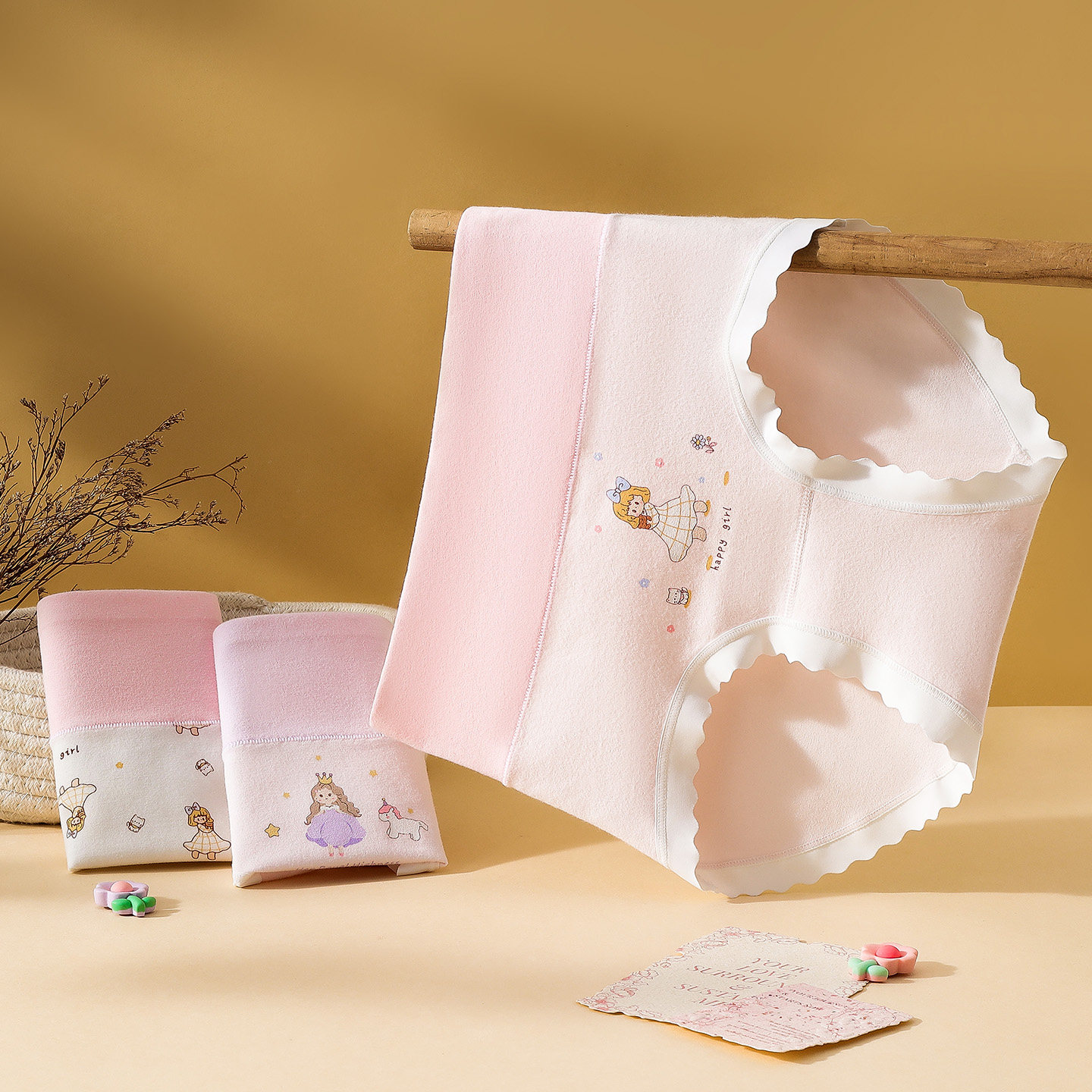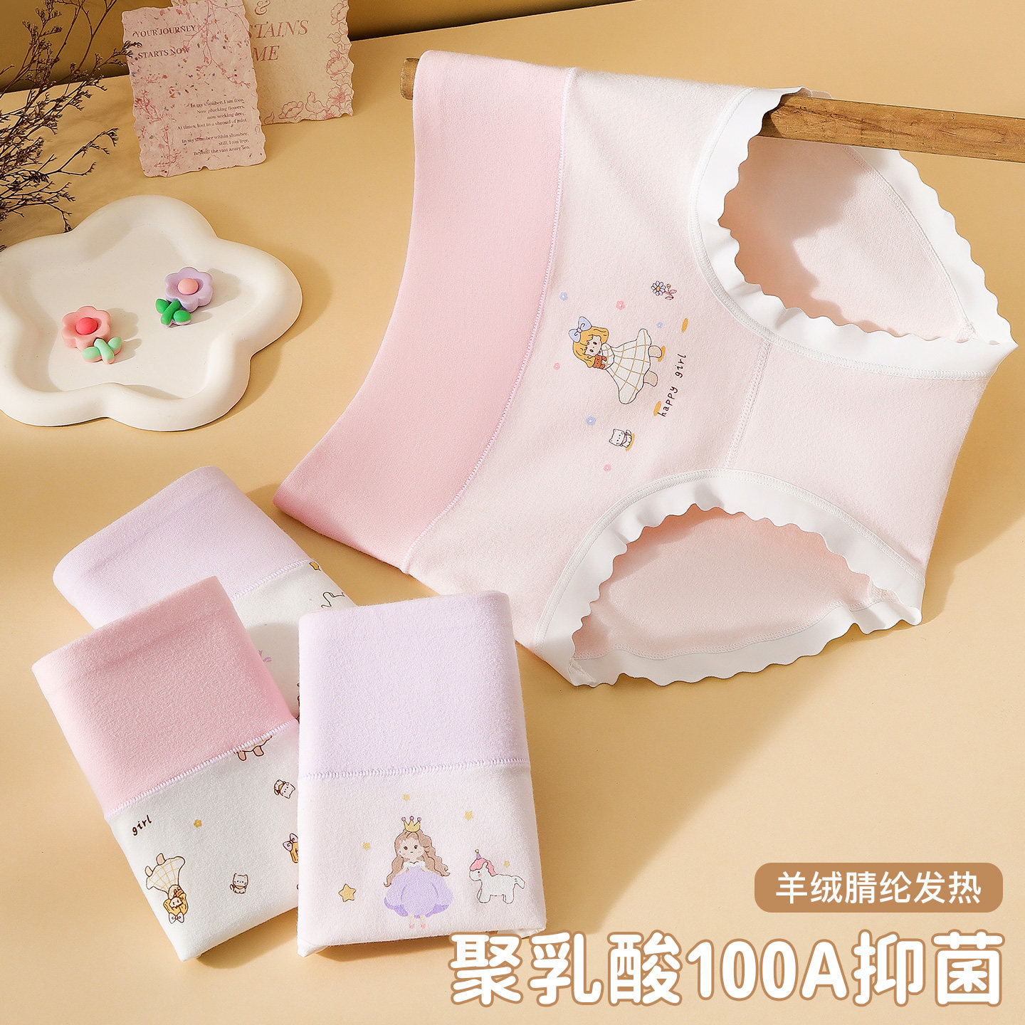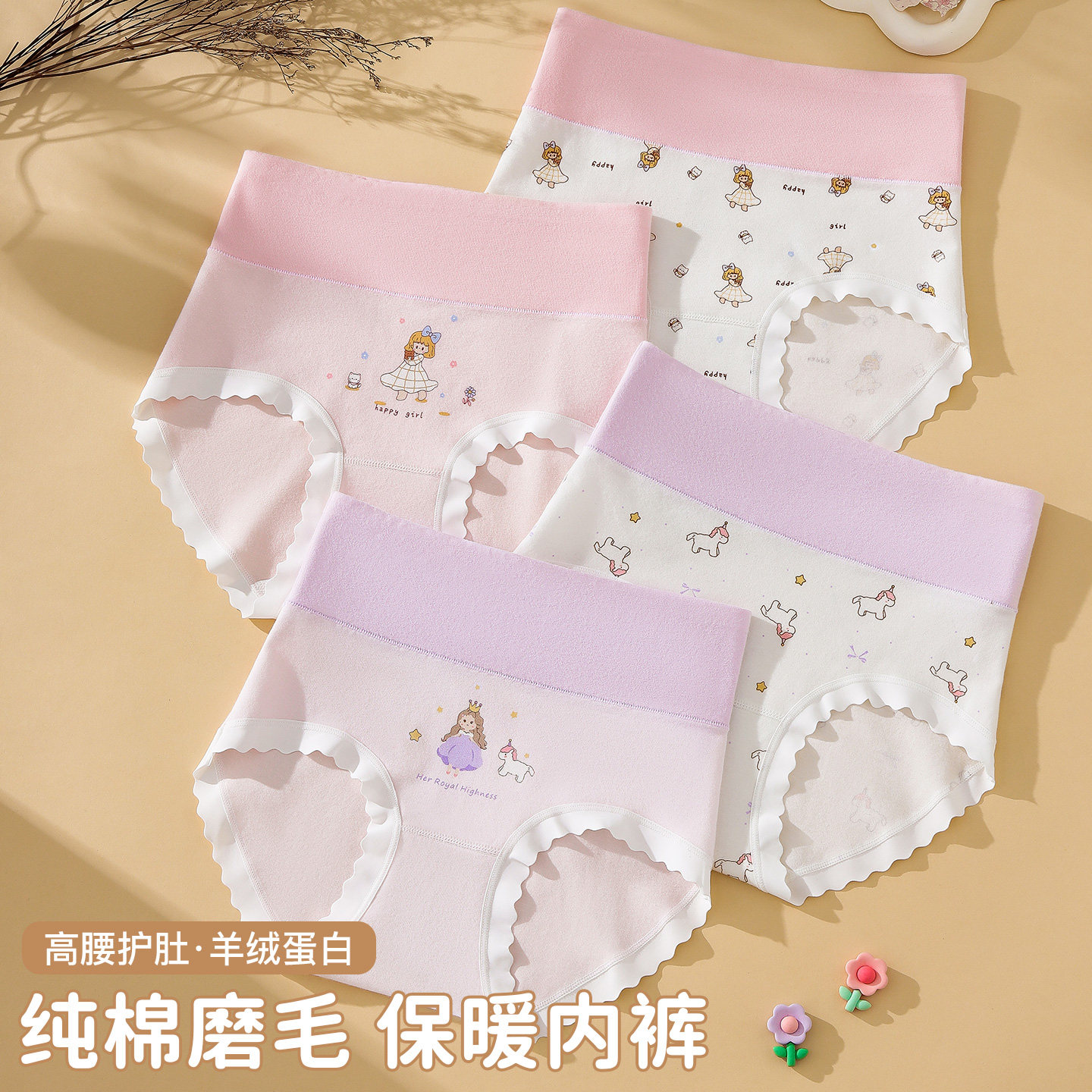 高腰护肚纯棉磨毛女童三角100A抑菌聚乳酸少女发育期内裤德绒保暖