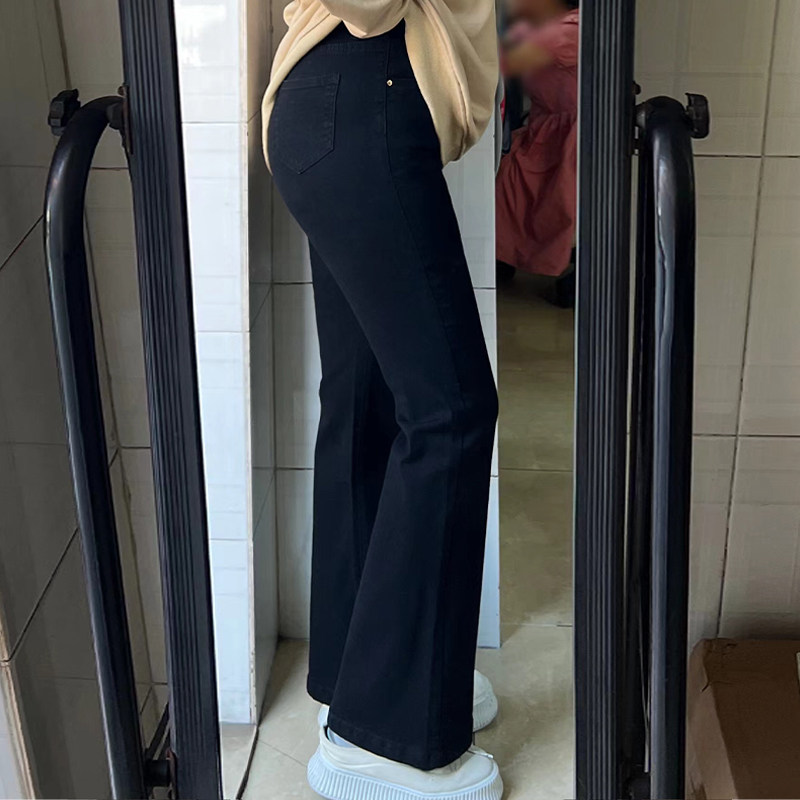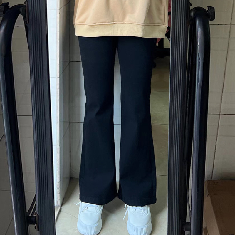 胖mm大码女装浅色弹力阔腿牛仔裤女春秋女款学生宽松显瘦微喇裤子