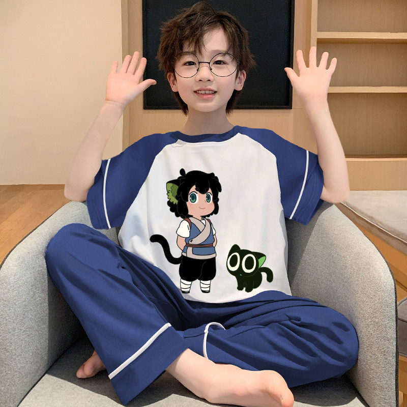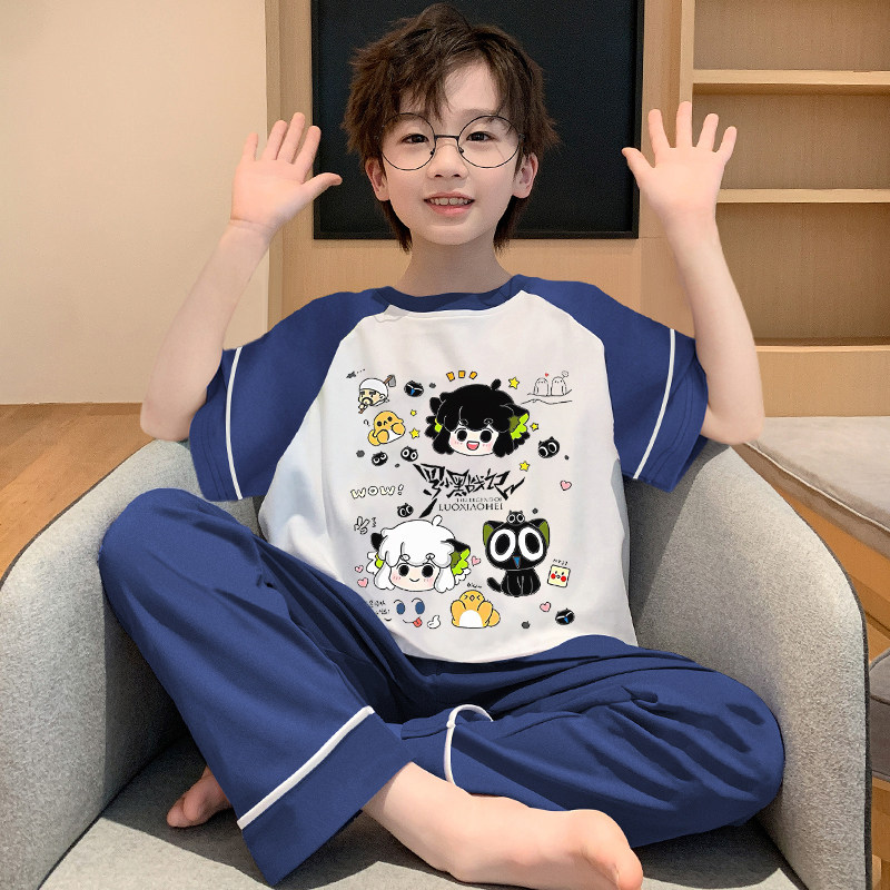 男童睡衣罗小黑纯棉短袖长裤大童2026新款春装套装男孩儿童家居服