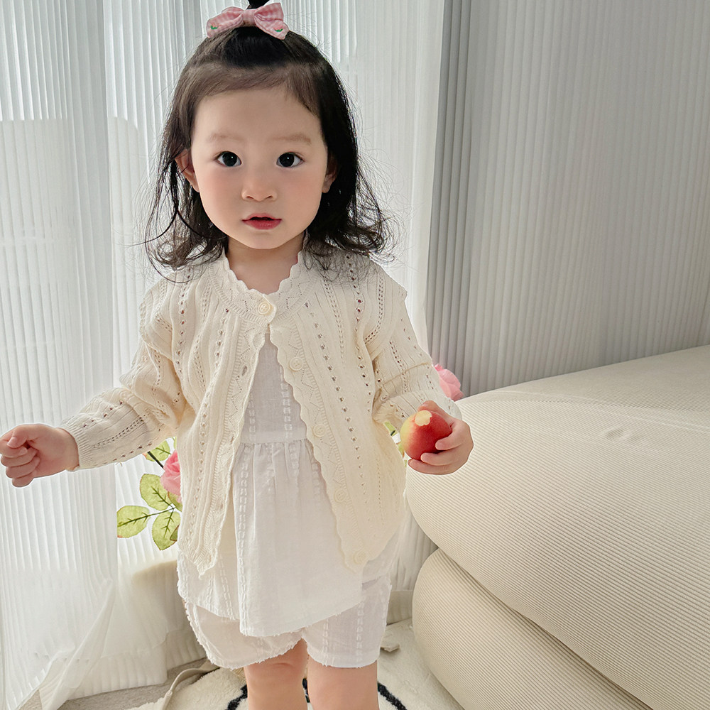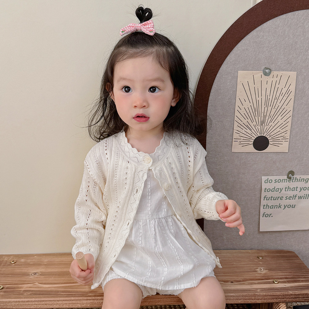 宝宝外套春秋夏季薄款女童镂空针织衫外出防晒衣婴儿早秋开衫上衣