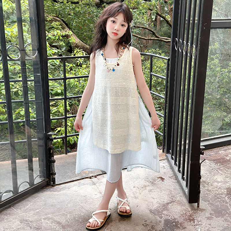 洋气西米亚连衣裙女大童夏季儿童夏装新款吊带无袖2026女童波时髦