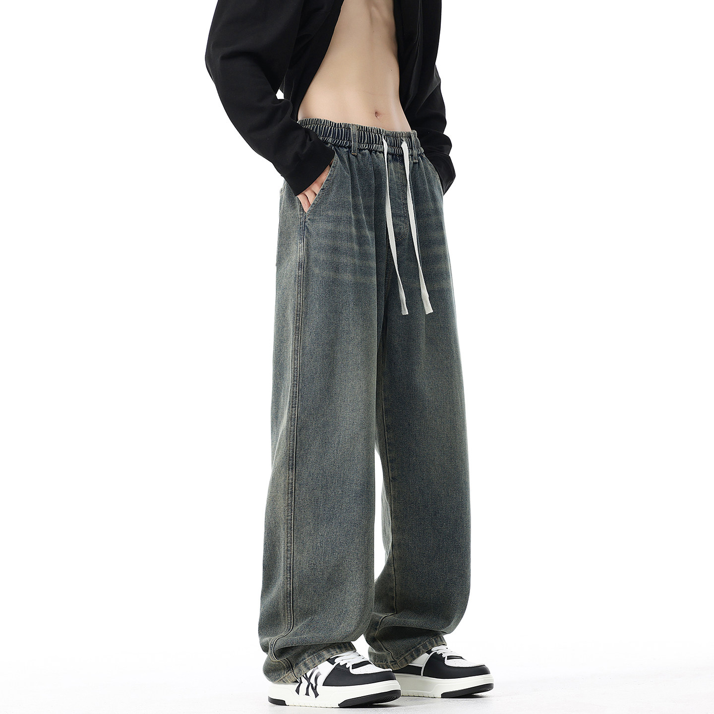 裤子男加长高个子牛仔裤加绒加厚190男生青少年潮牌做旧拖地长裤