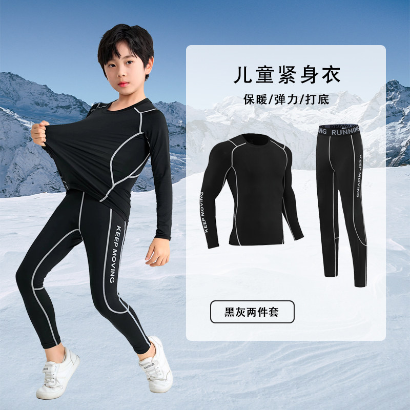 秋冬季儿童紧身速干衣训练服青少年学生篮球打底滑雪加绒运动套装