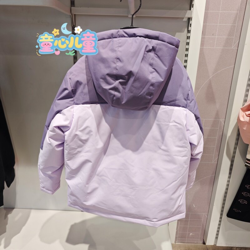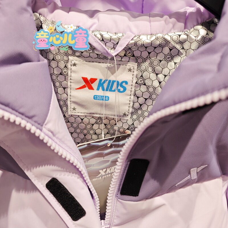 特步儿童2025冬新款675424194284女大童防雨雪短款羽绒服拼色外套