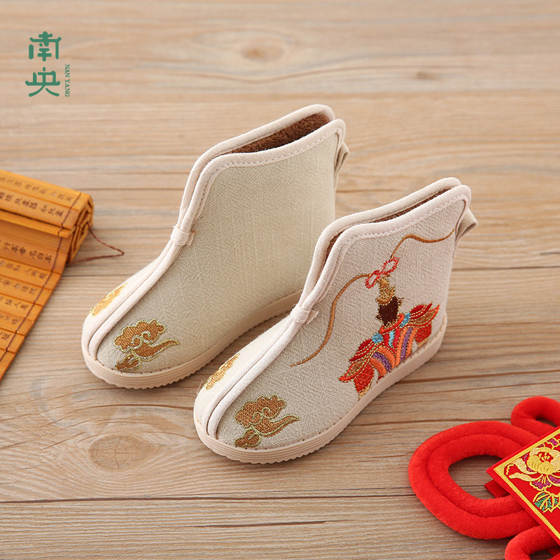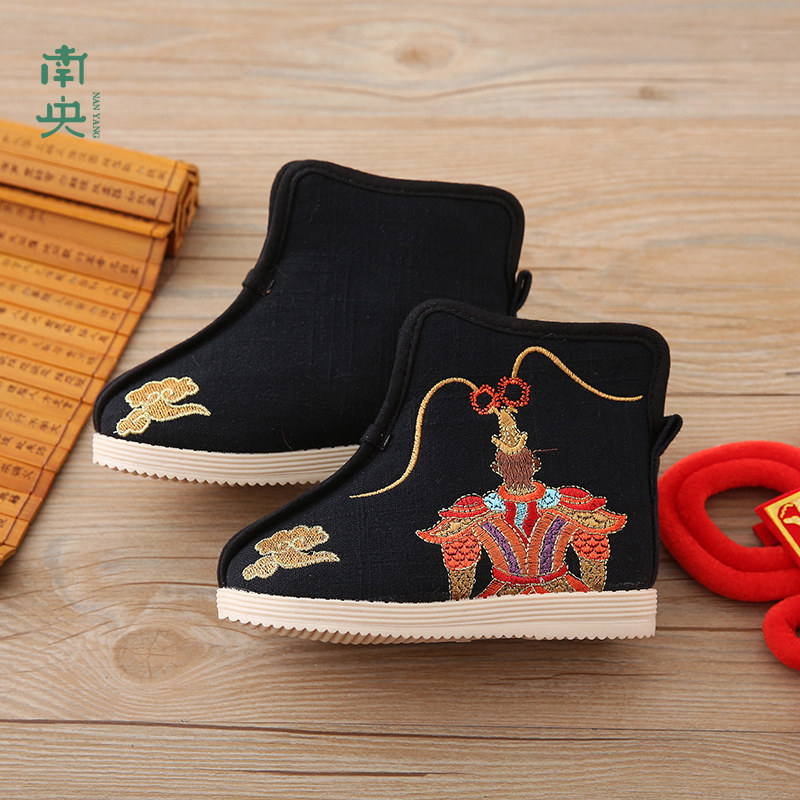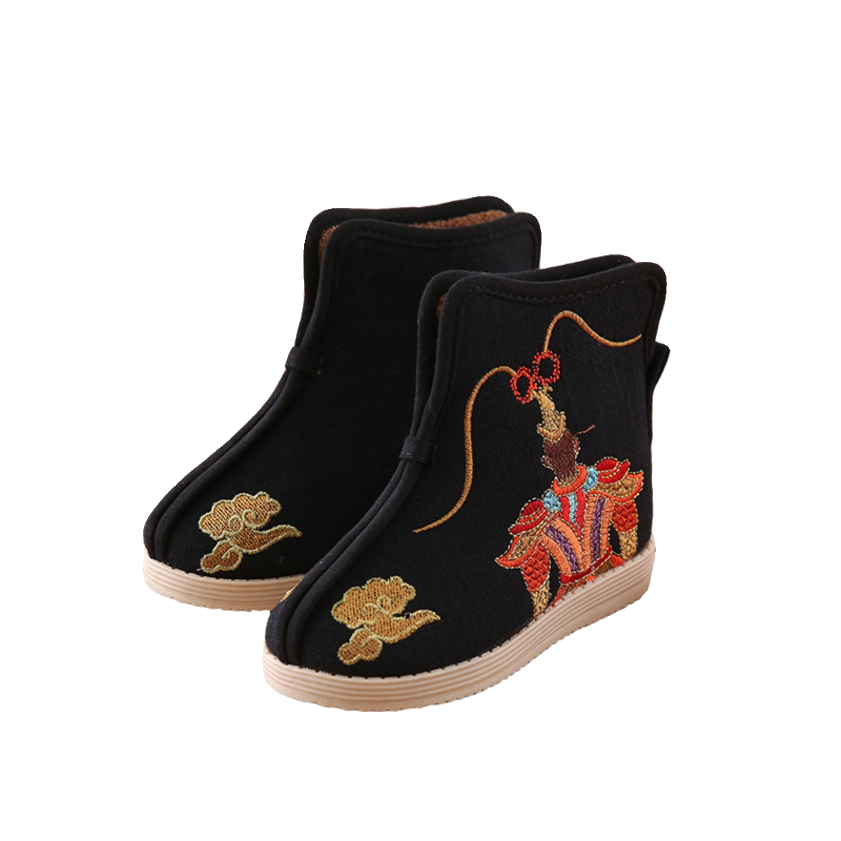 儿童绣花鞋老北京布鞋男童冬季加绒鞋子中国风唐装靴子汉服演出鞋