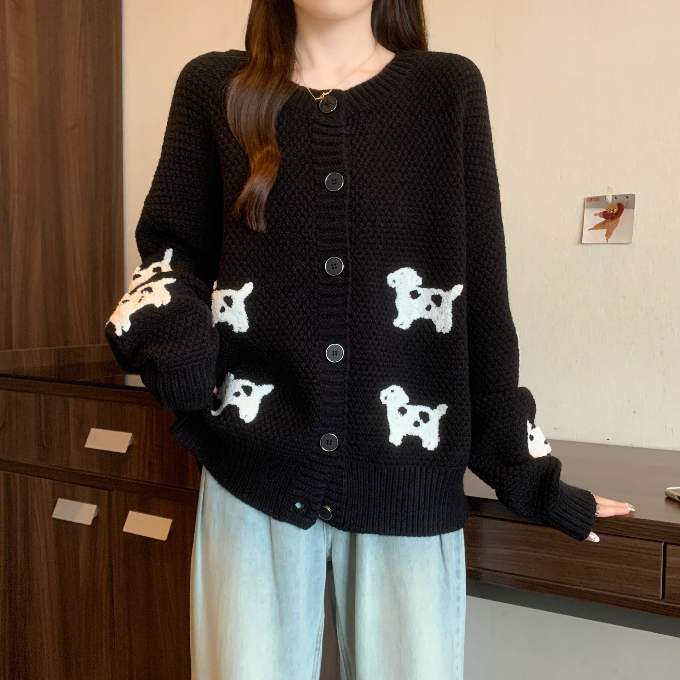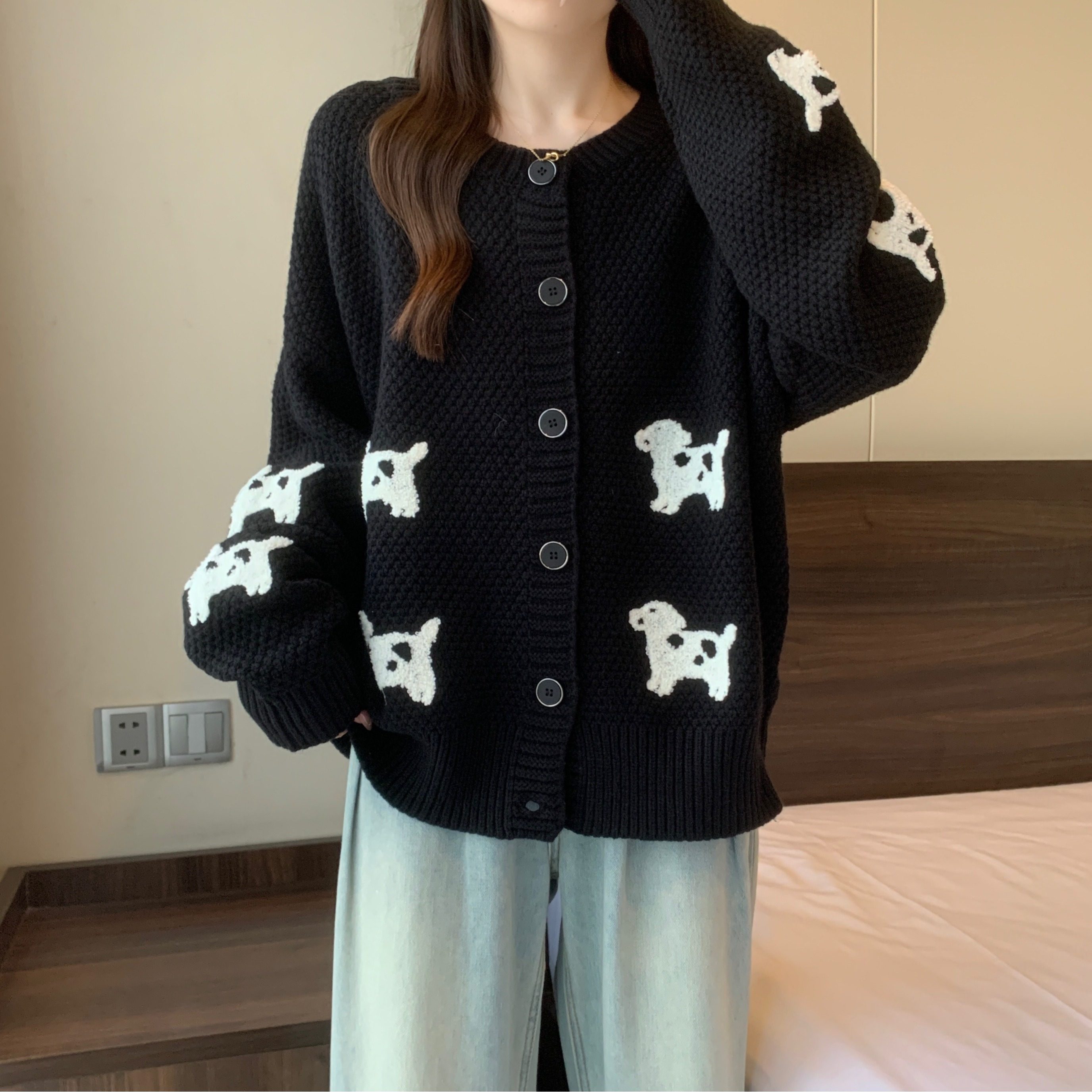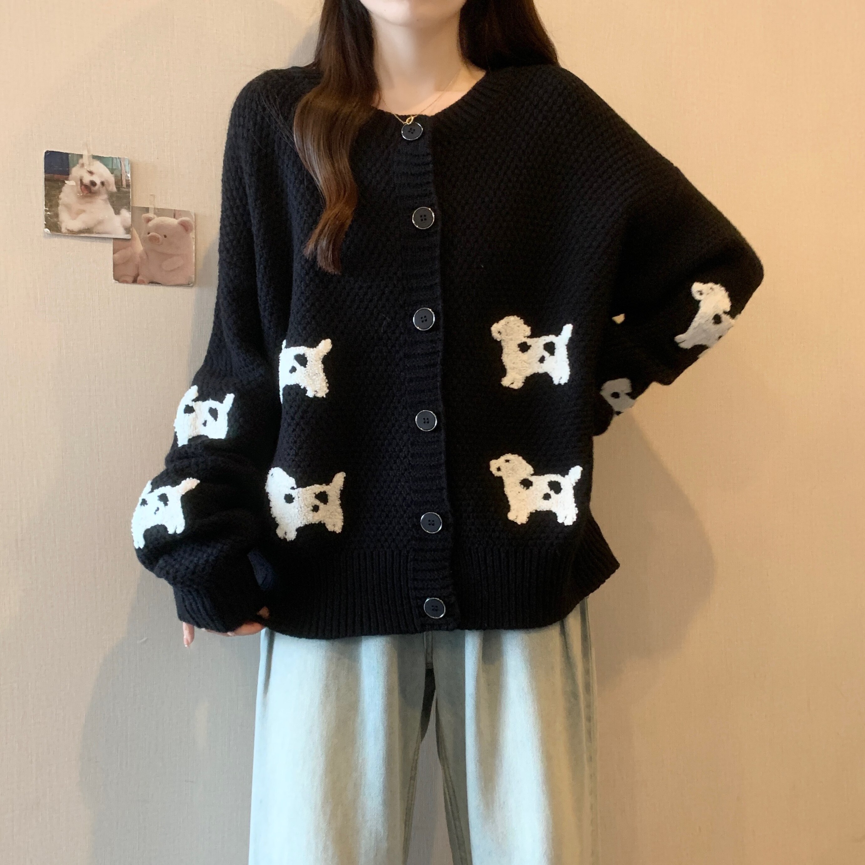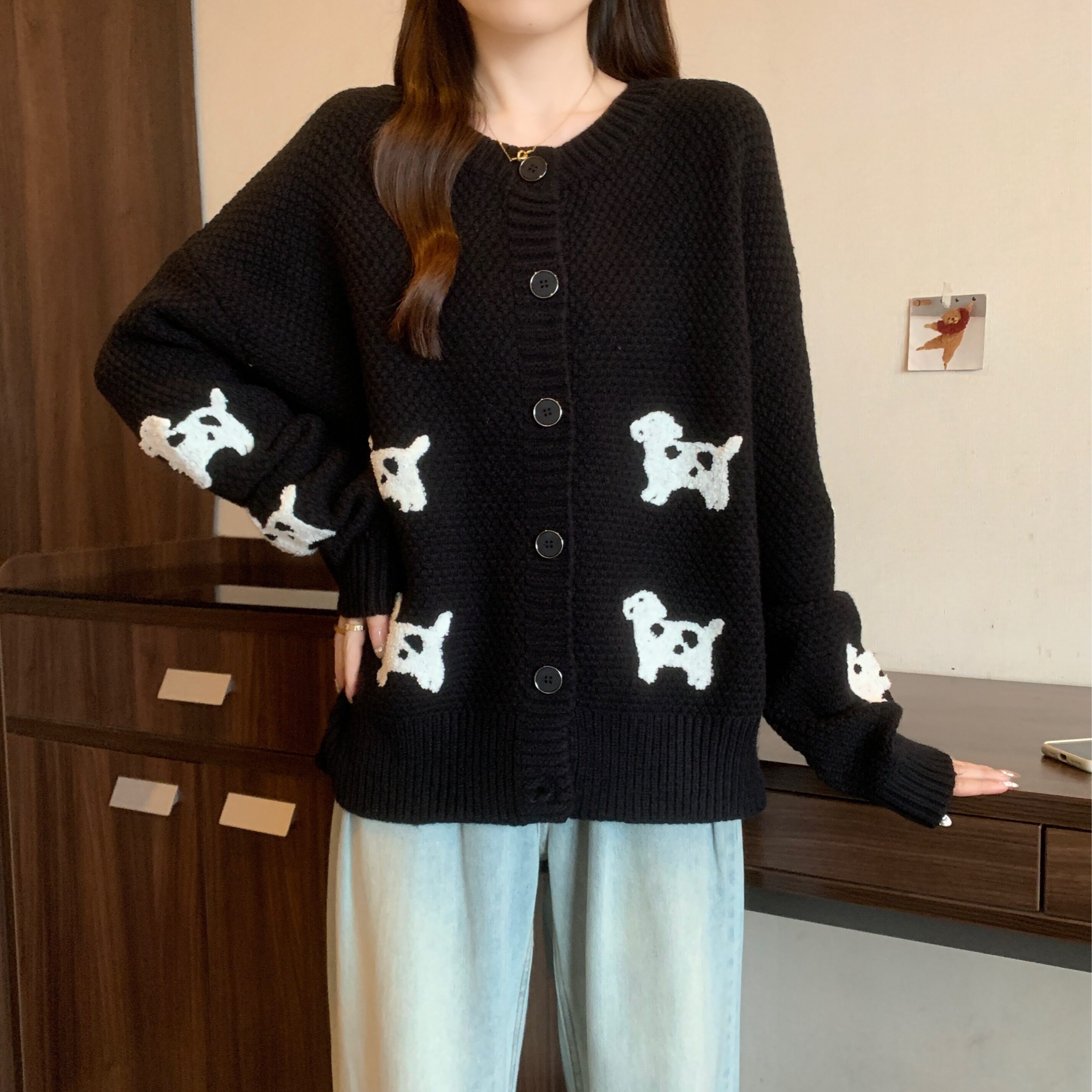 上衣女士女款2026大码春季新款黑色小狗开衫宽松显瘦毛衣针织衫女
