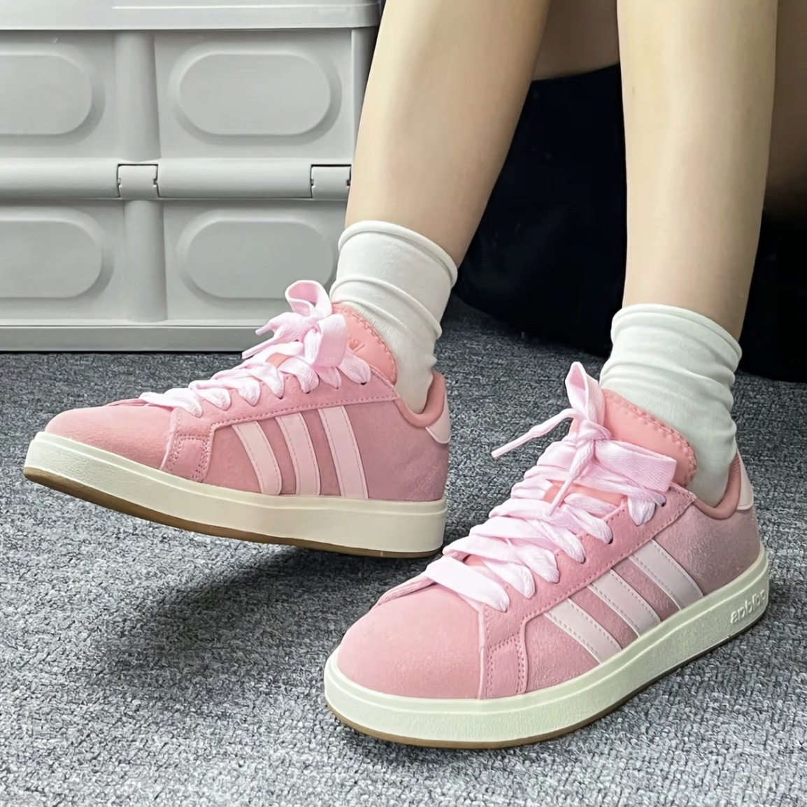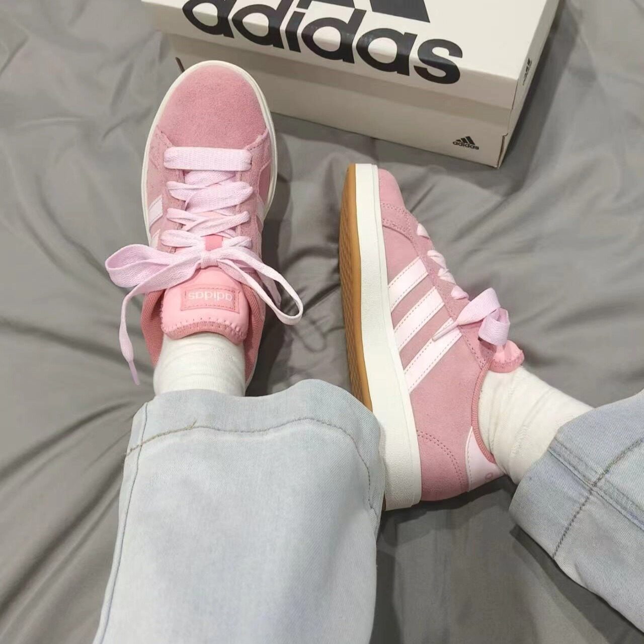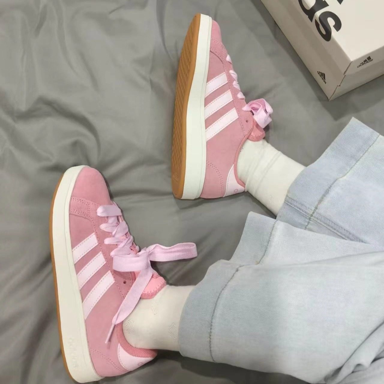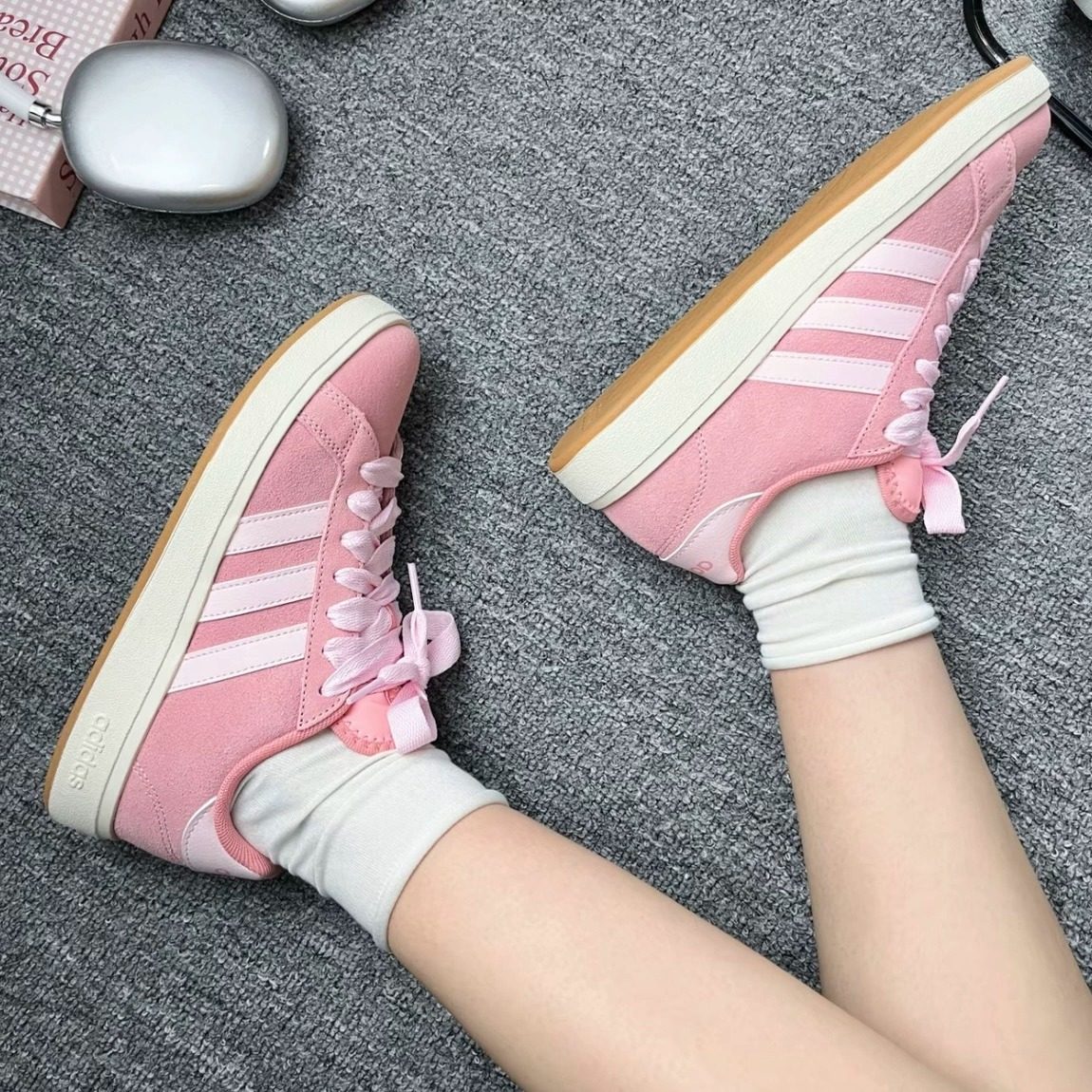 Adidas阿迪达斯正品草莓熊女鞋粉色运动德训鞋男复古休闲T头板鞋