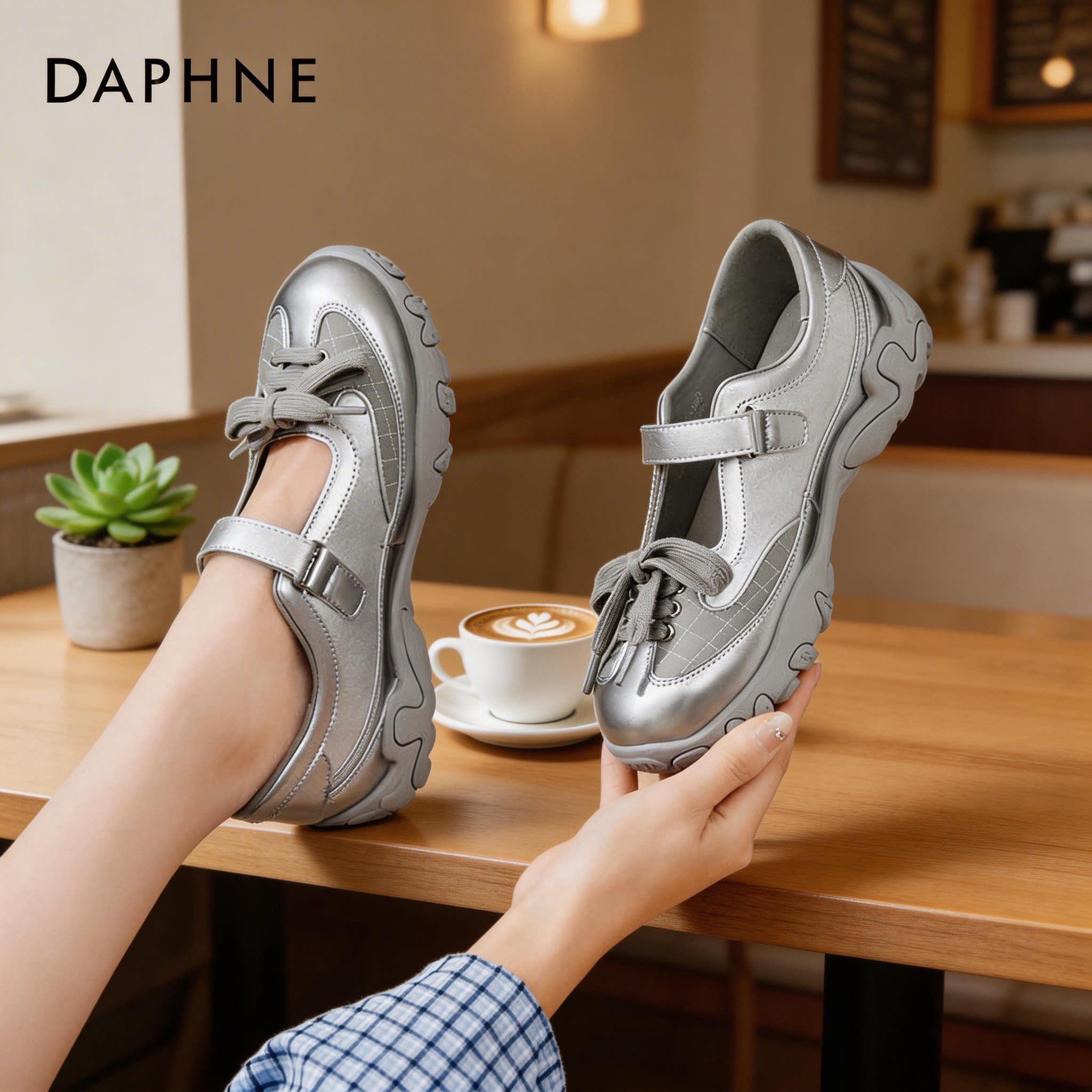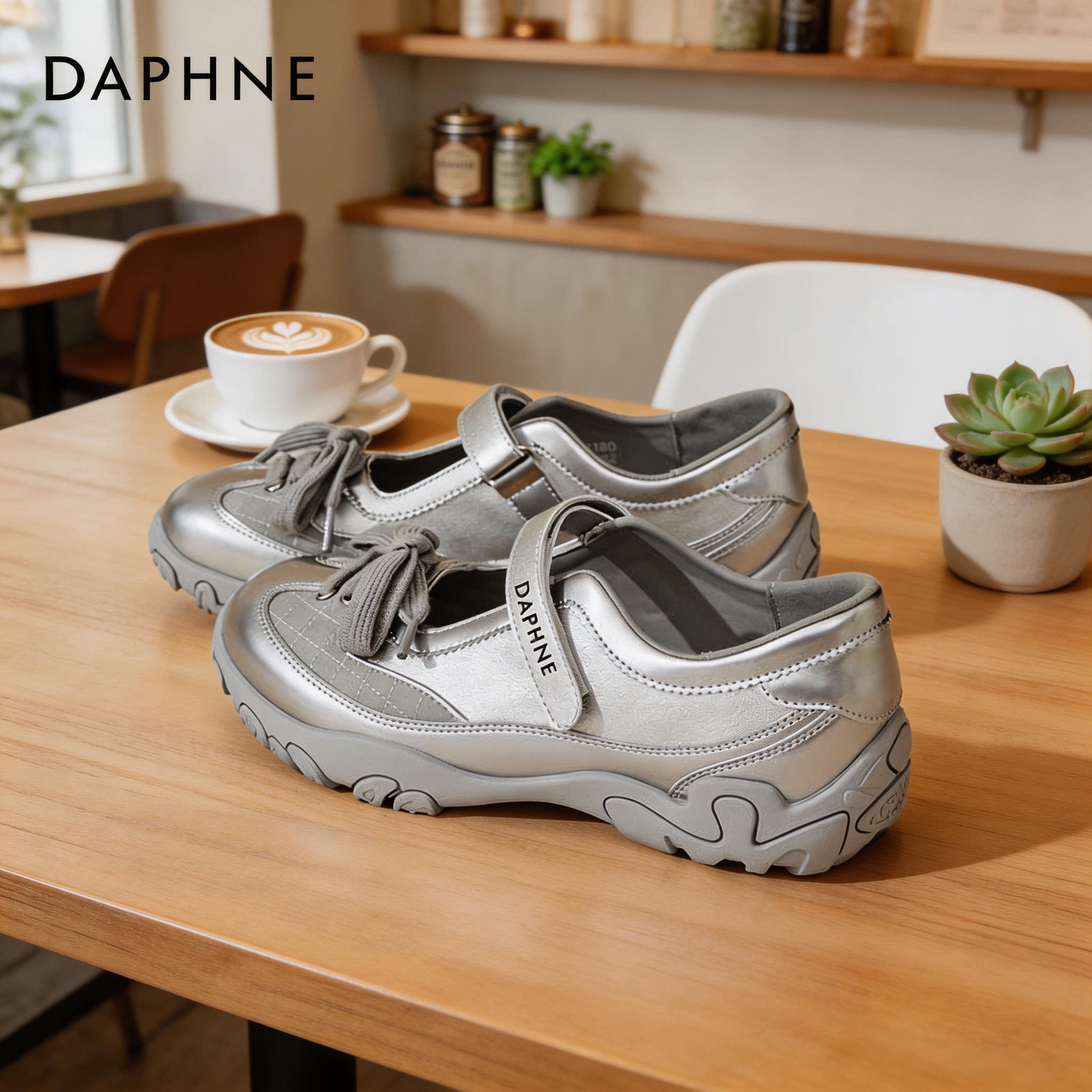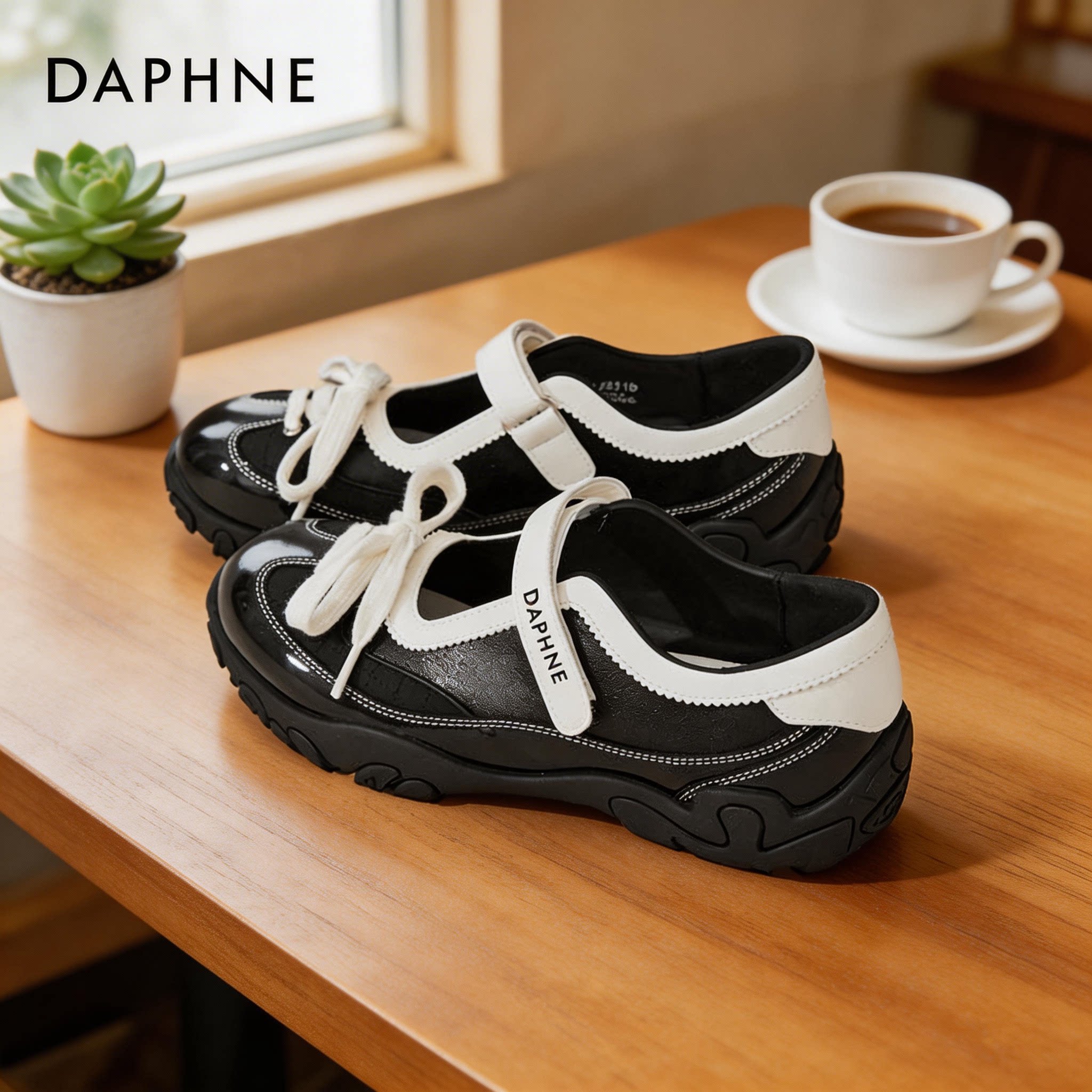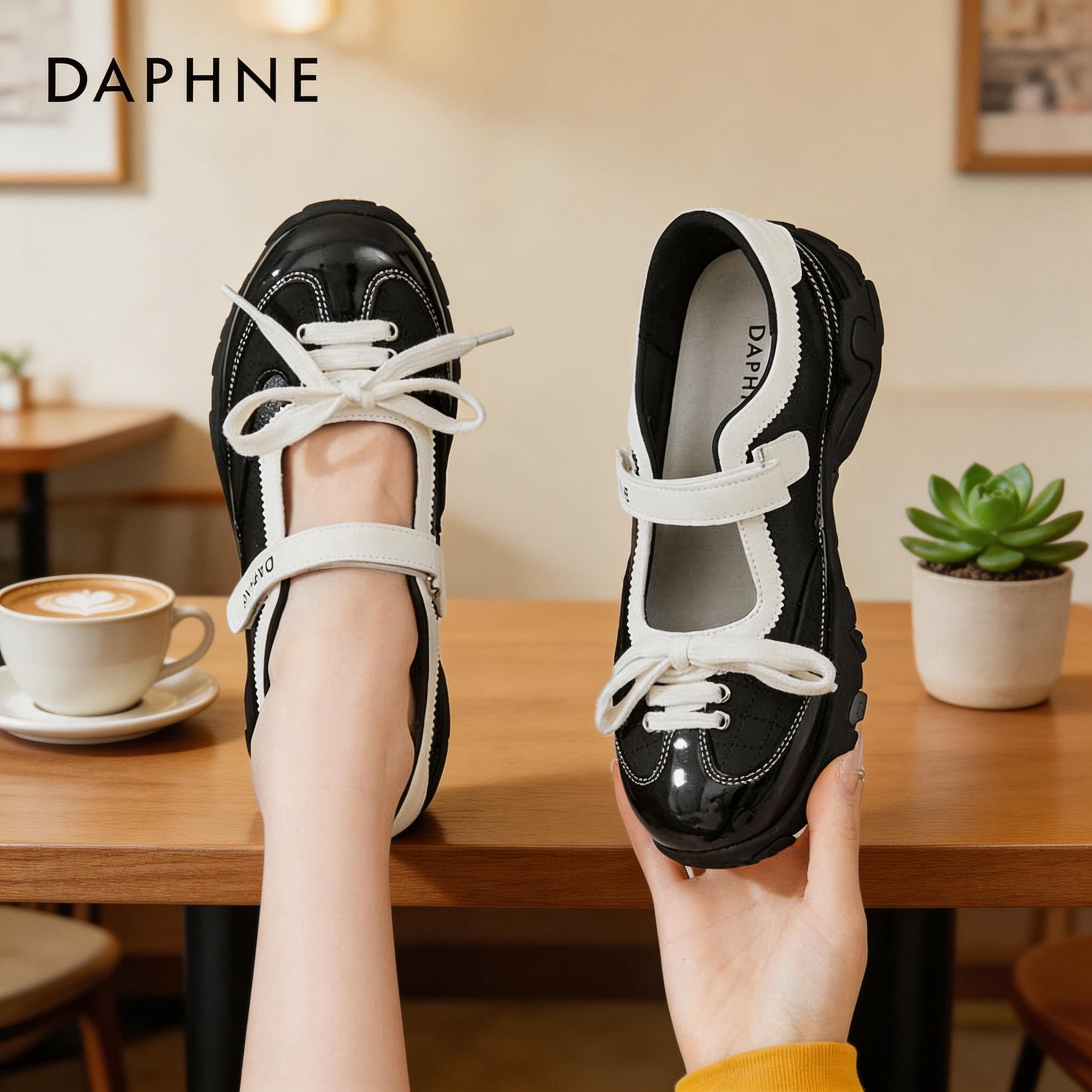 达芙妮黑色甜酷英伦风魔术贴单鞋女春季爆款增高厚底浅口玛丽珍鞋