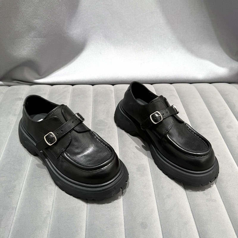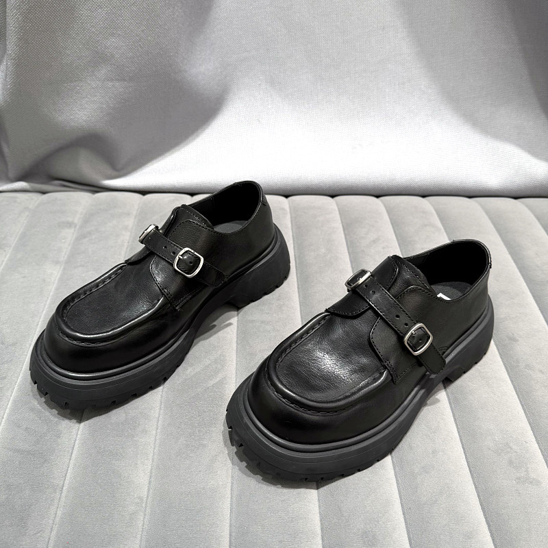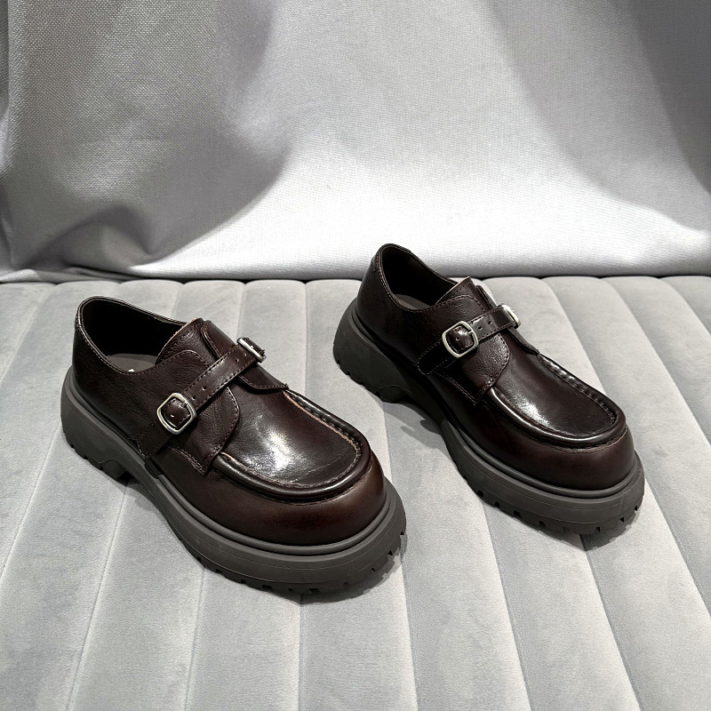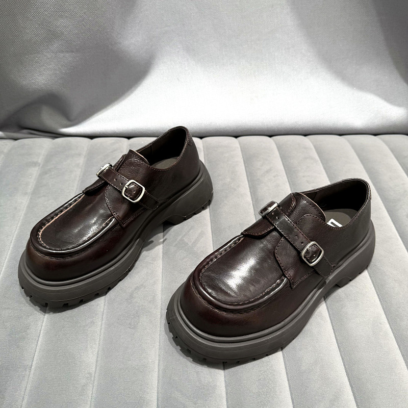 欧洲站女鞋2026年早春新款欧货真皮厚底乐福鞋英伦风一脚蹬单鞋