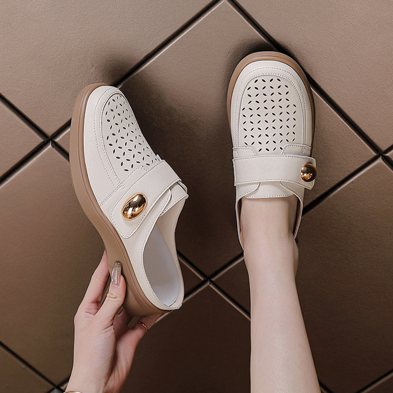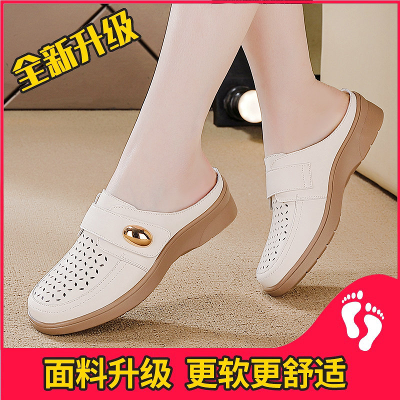 包头半拖鞋女夏季2026年新款外穿真皮女士厚底气质小众高级感凉拖
