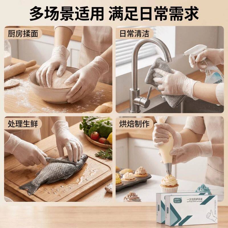 一次性手套PVC厨房烘焙食品级加厚橡胶乳胶耐用洗碗家务防水防油