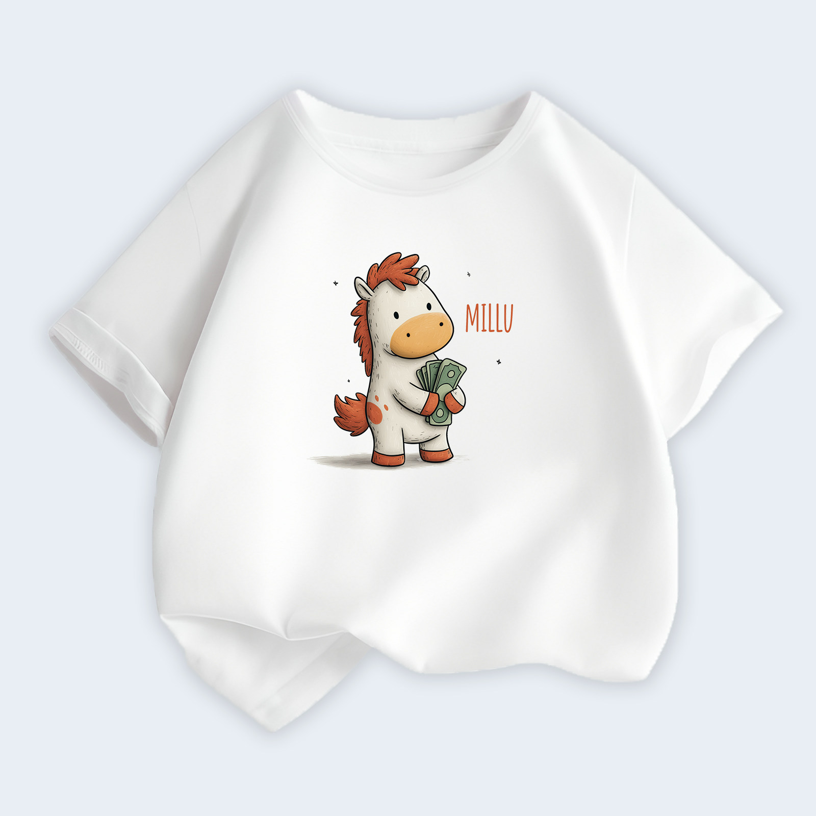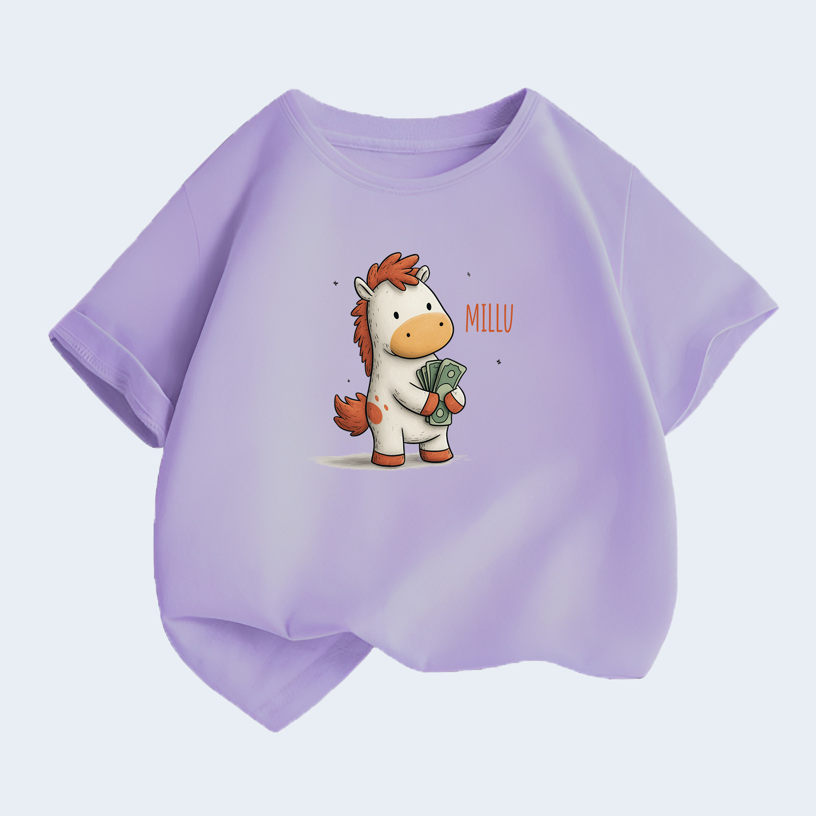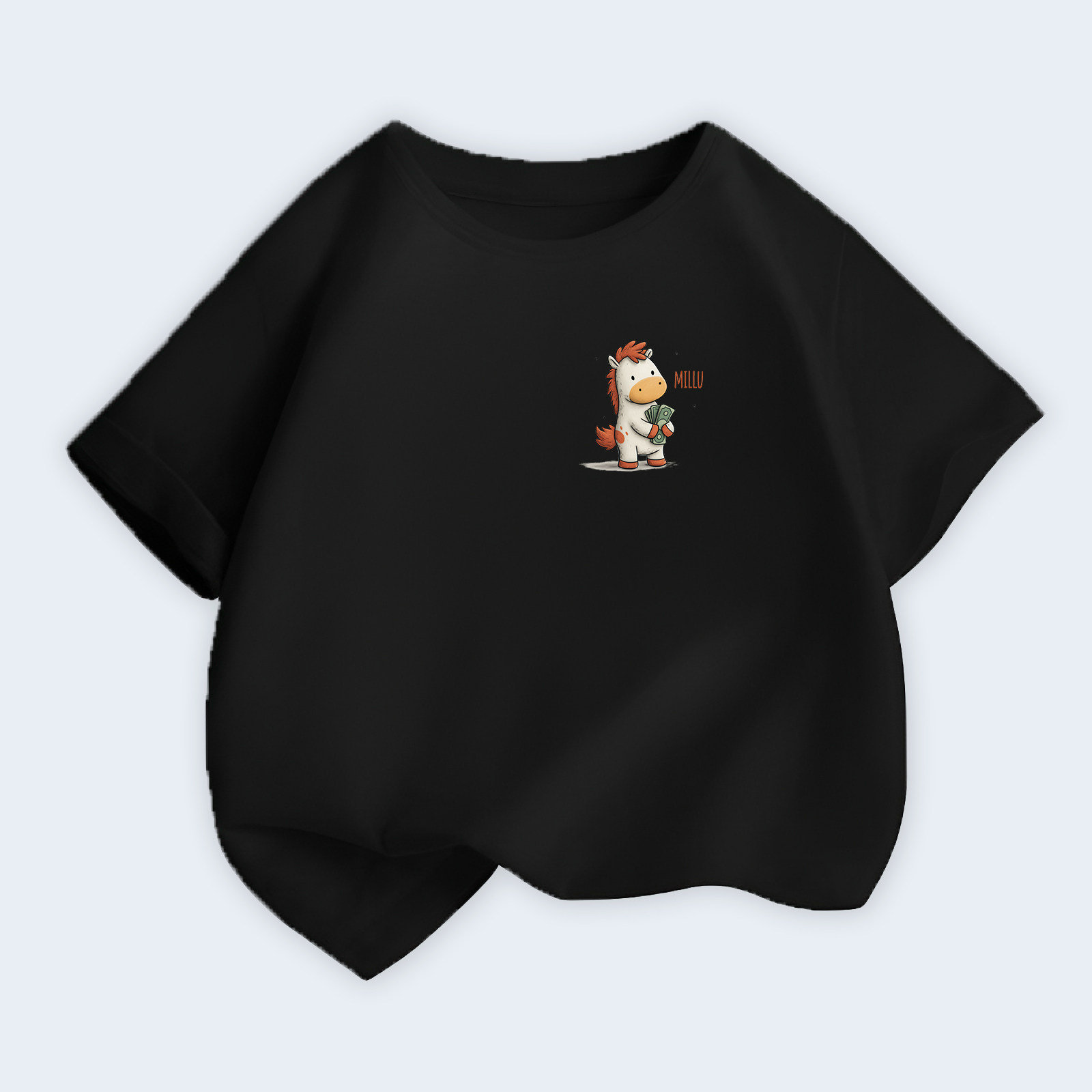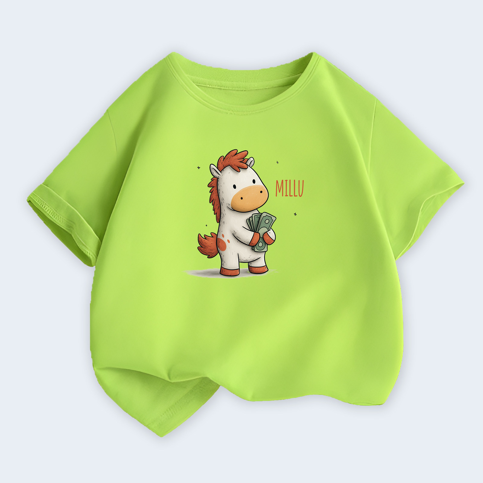 2026夏季女童T恤纯棉荧光绿短袖上衣中大童卡通小马印花可爱潮牌t
