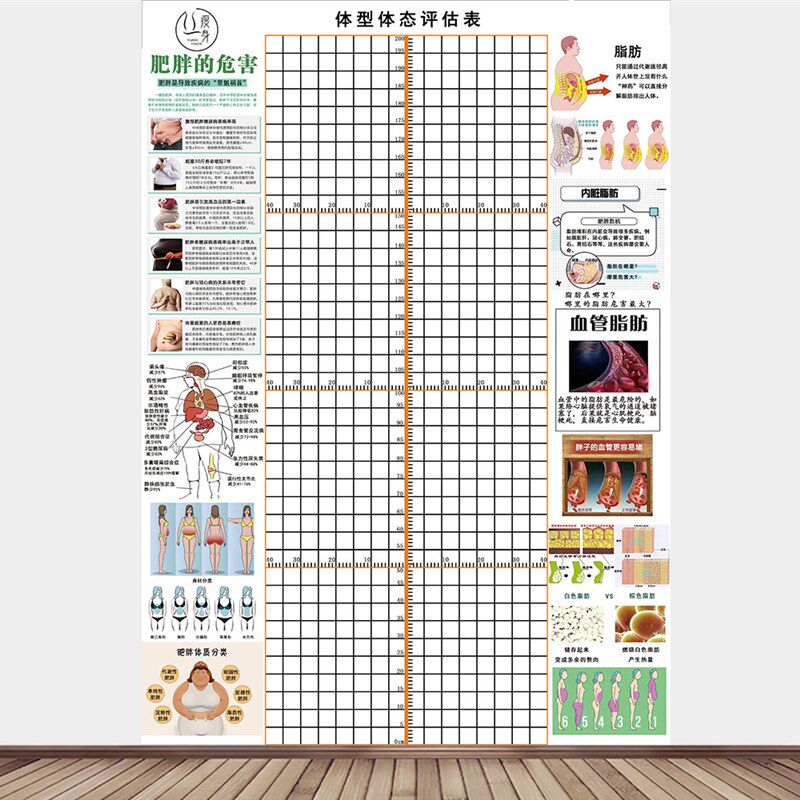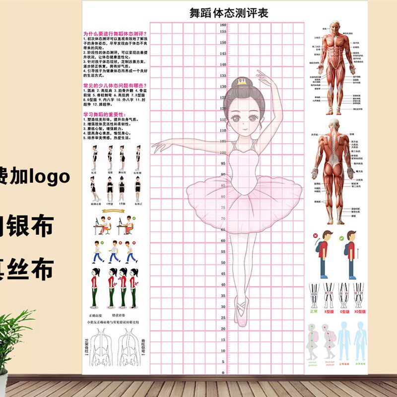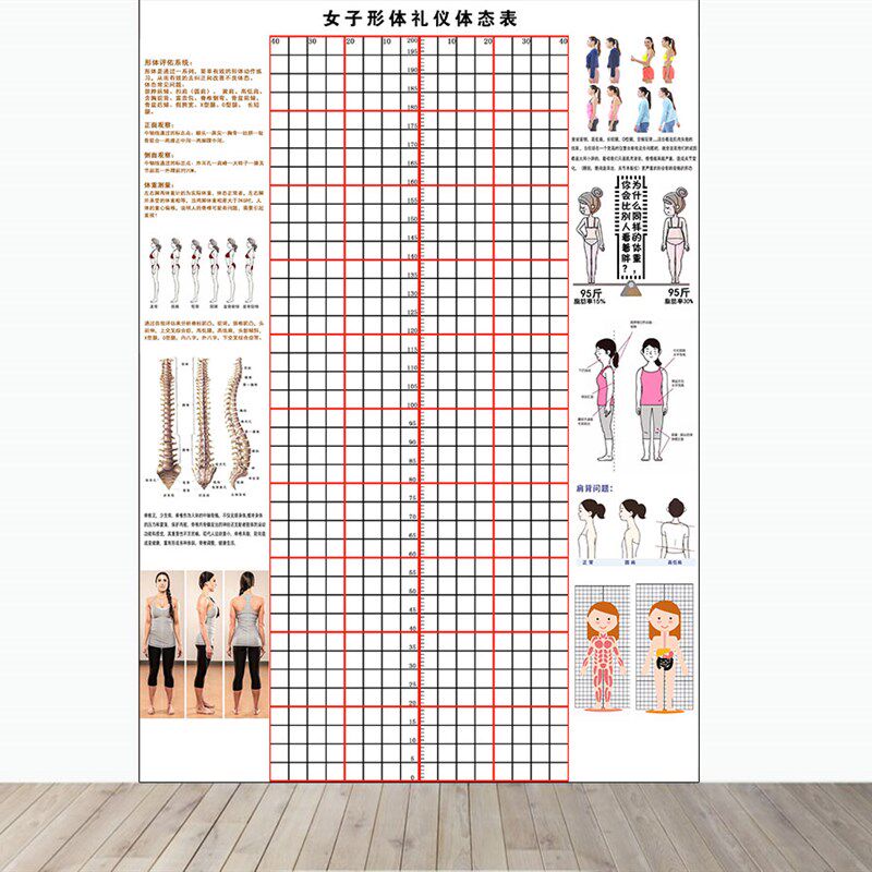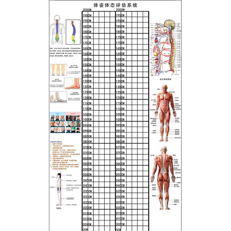 体态评估图健身房体测表瑜伽私教身体形体L测评脊椎修复墙壁画装