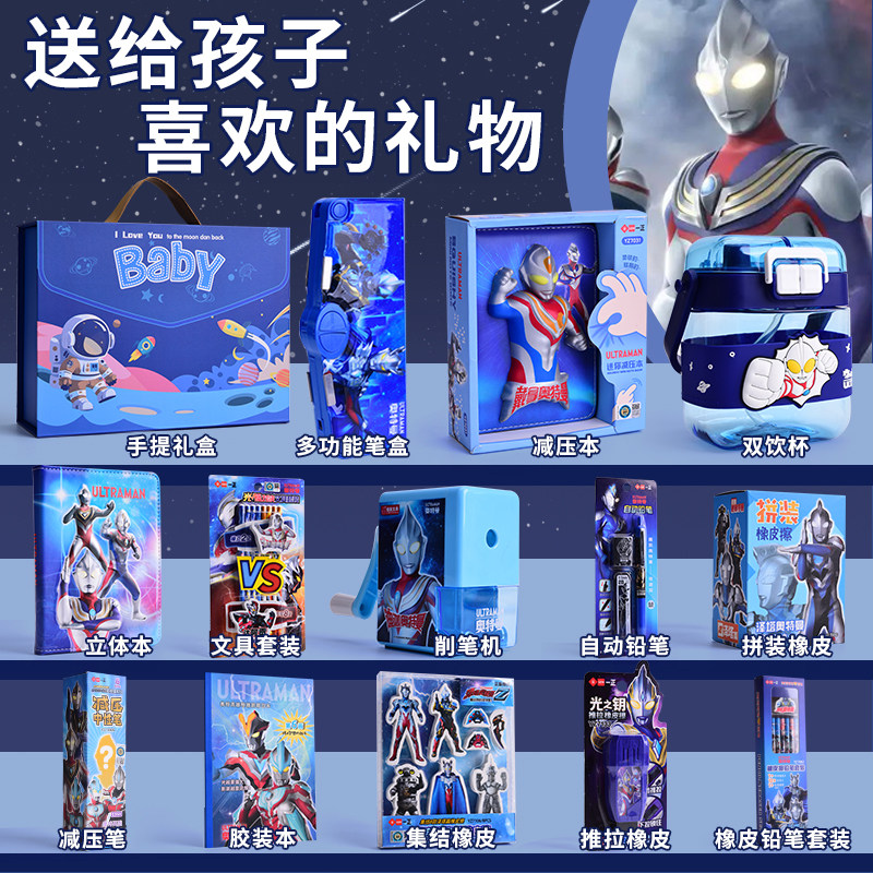 奥特曼文具礼盒套装小学生一二年级大礼包儿童学习用品大全幼儿园书包7岁男孩生日礼物盲盒开学仪式感伴手礼