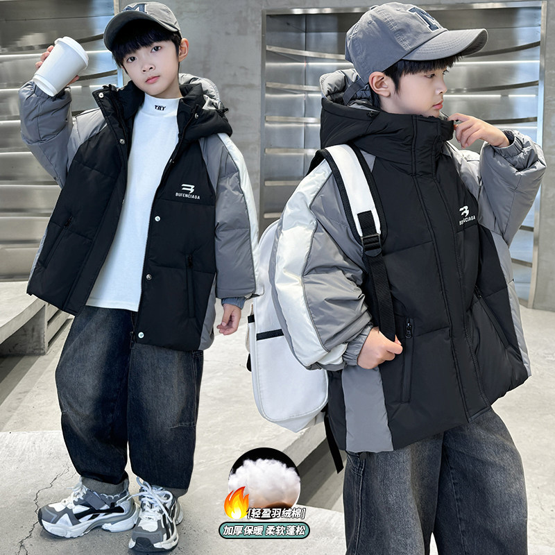 男童冬装羽绒棉服加厚2026新款中大童冬季男孩渐变色外套洋气痞帅