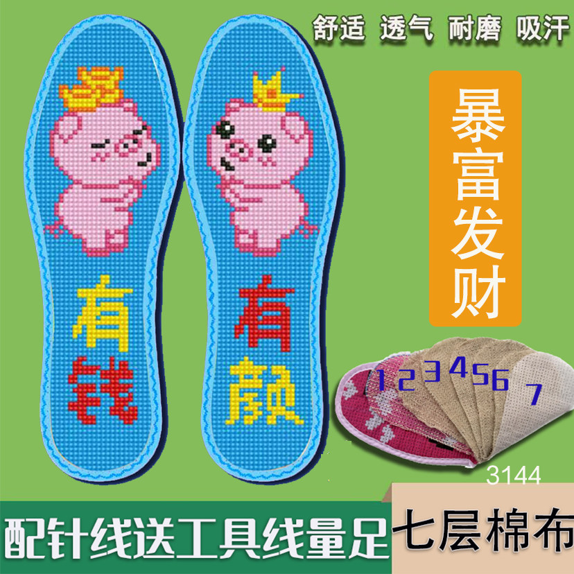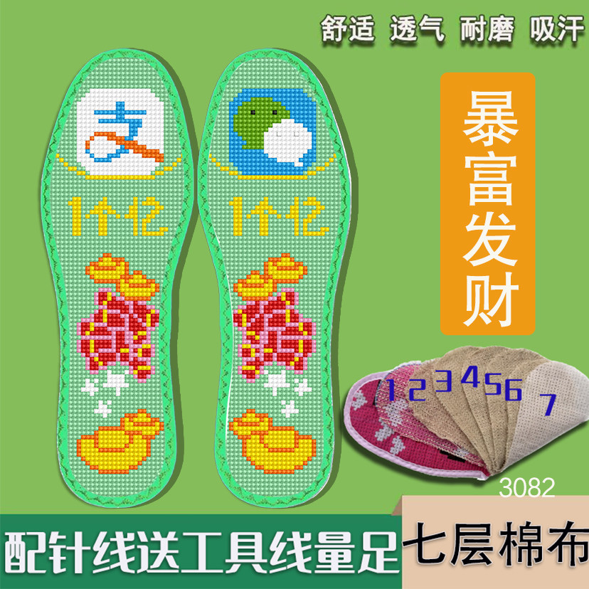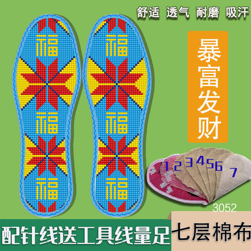 七层棉布新款十字绣鞋垫自己绣带针线半成品刺绣吸汗平安是福嫁妆