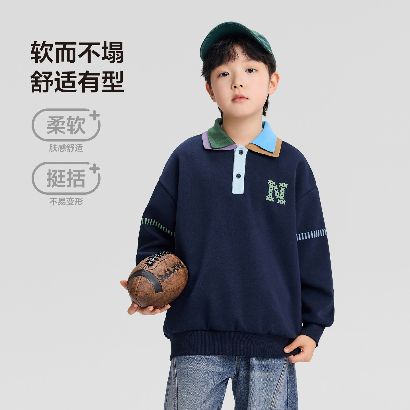左西童装男童POLO领卫衣学院洋气撞色儿童春装2026新款中大童上衣