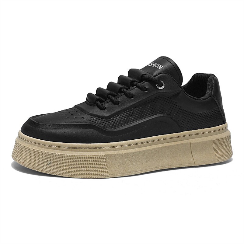 男鞋2025新款春秋季透气百搭高级感运动休闲板鞋皮面厚底增高小白
