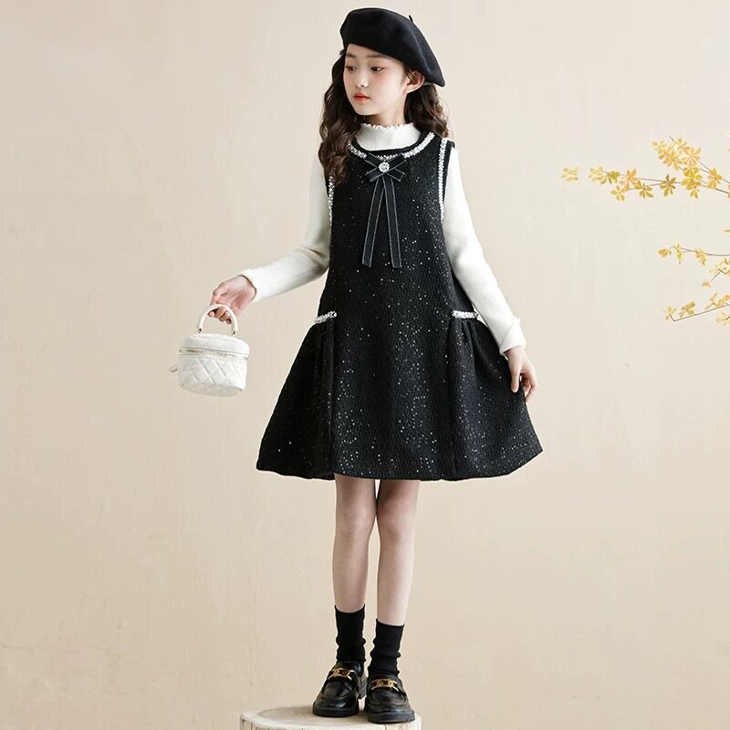 女童小香风套装新款背心裙子洋气冬装大童女孩连衣裙秋冬儿童冬季