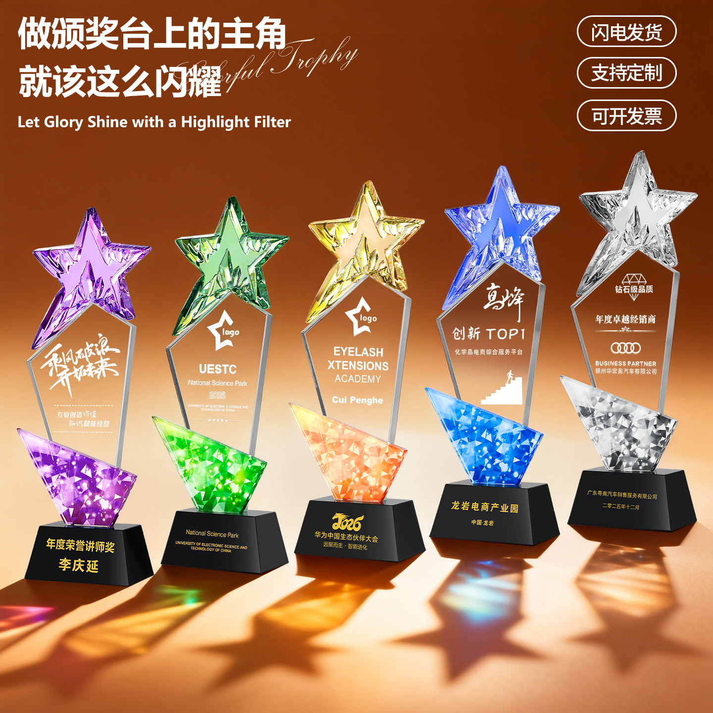 311线报网描述:炫彩水晶奖杯定制 公司周年庆典/个人表彰