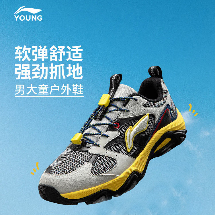李宁岩峦LITE儿童运动鞋男女童防水耐磨反光减震回弹青少年户外鞋