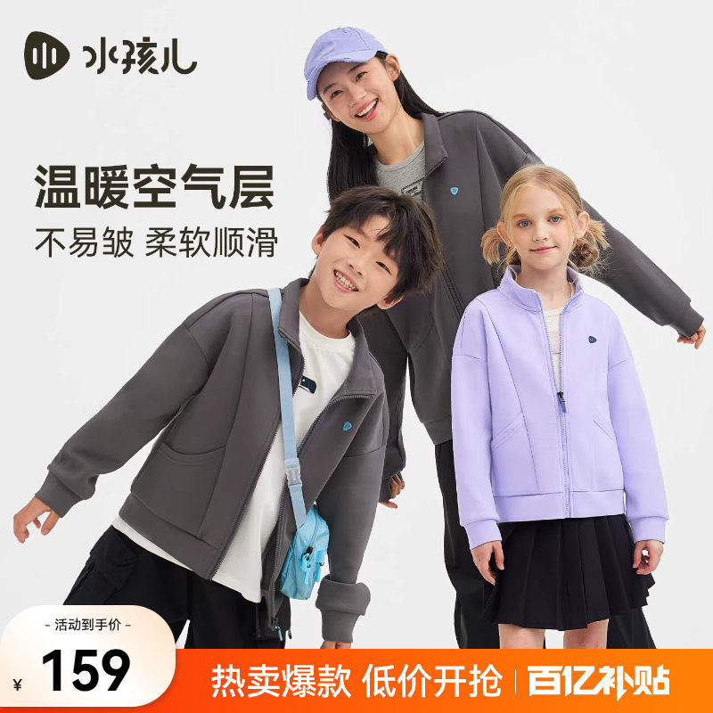 水孩儿儿童外套2026春季新款男女大童运动上衣亲子红色高弹夹克衫