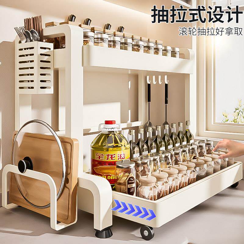 抽拉式厨房调料品置物架多功能台面放调味料瓶罐放置架筷子收纳盒