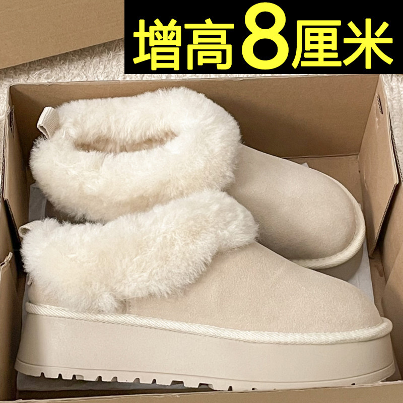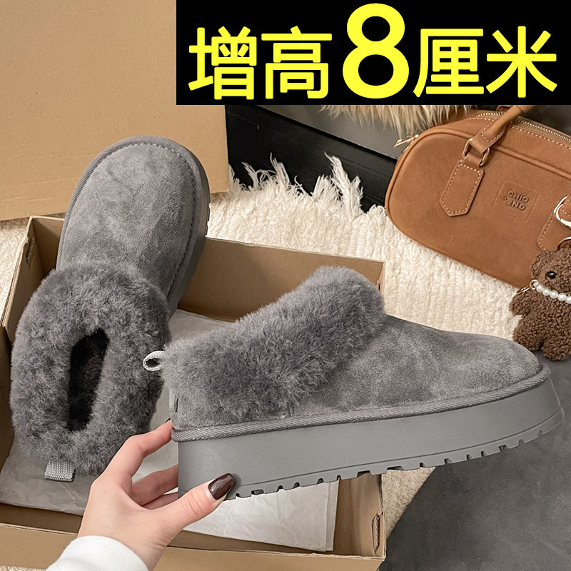 内增高白色雪地靴女2026新款冬季厚底加绒保暖棉鞋灰色毛毛棉靴
