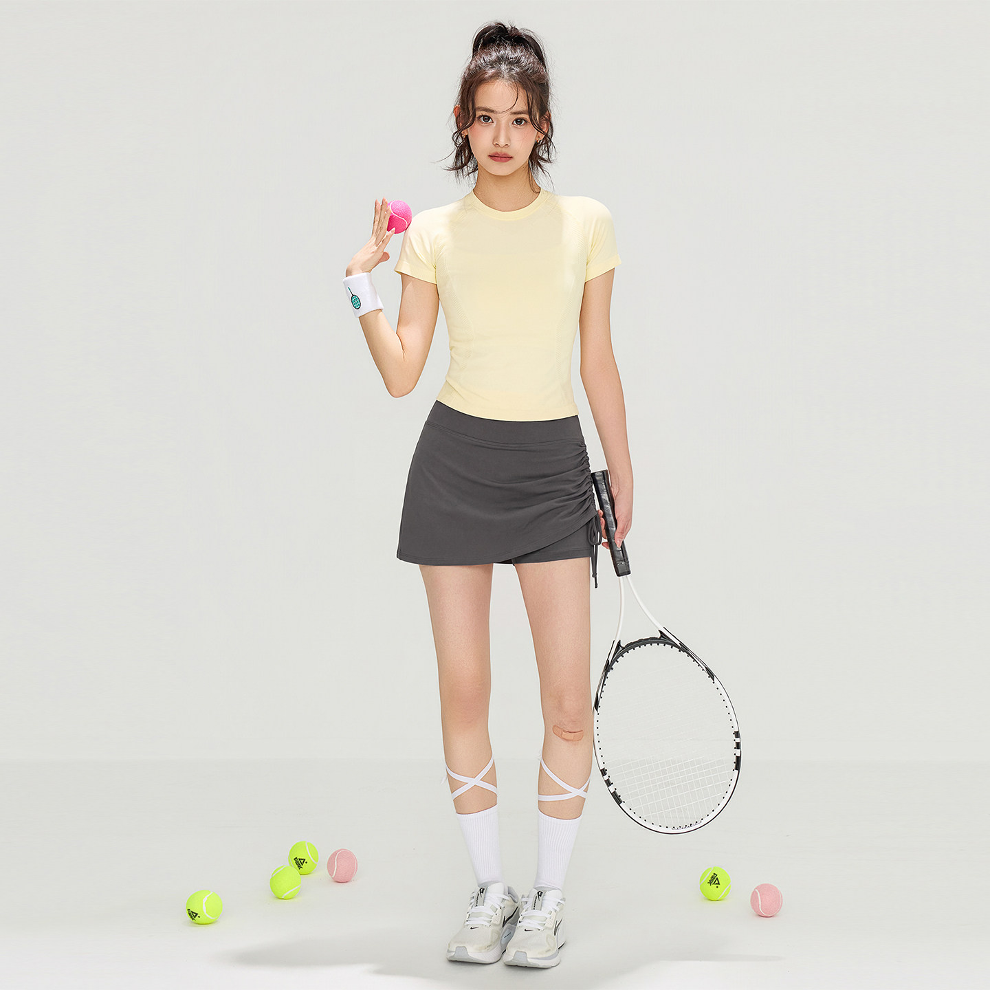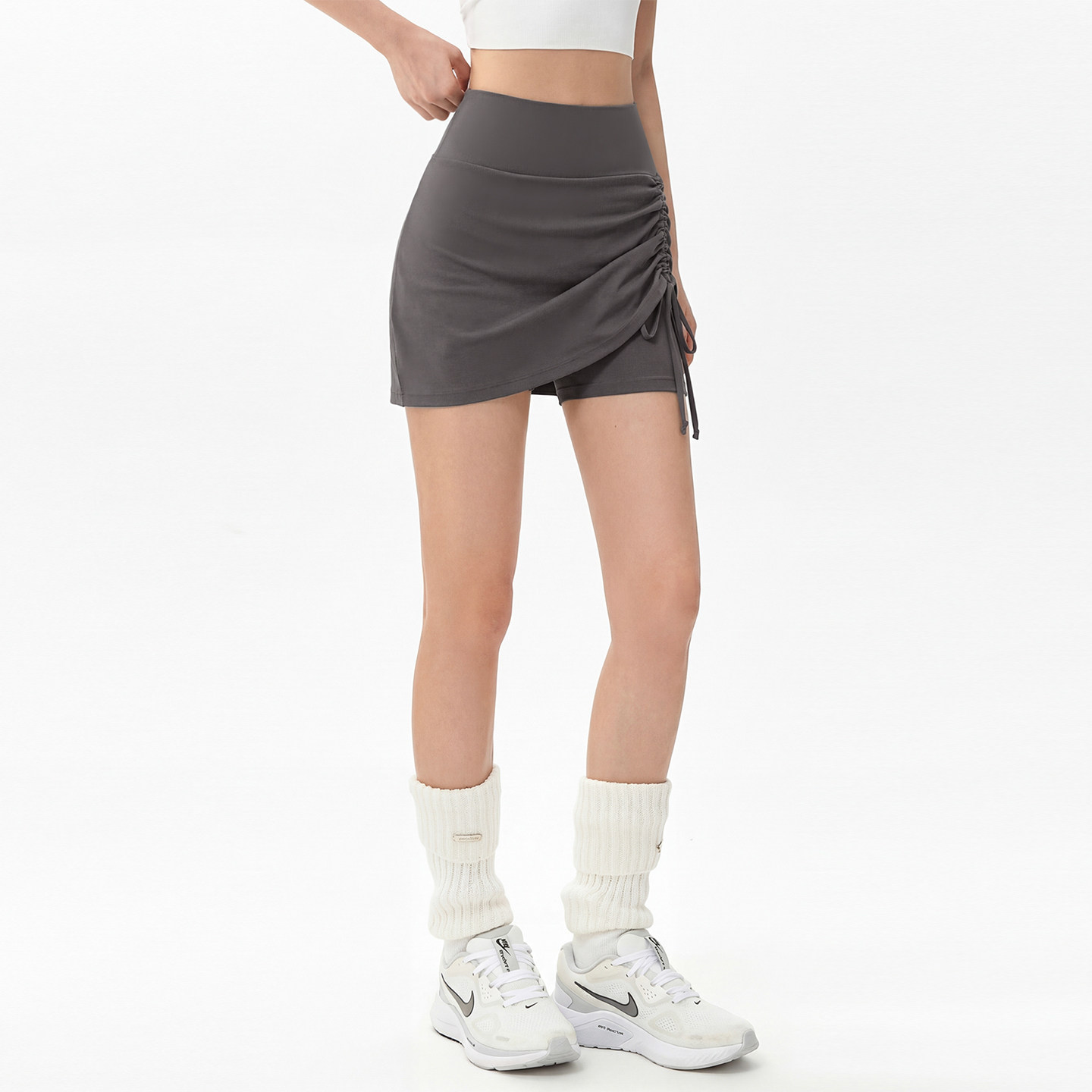 Aziztas假两件运动短裤女高腰收腹提臀瑜伽裤跑步训练三分健身裤