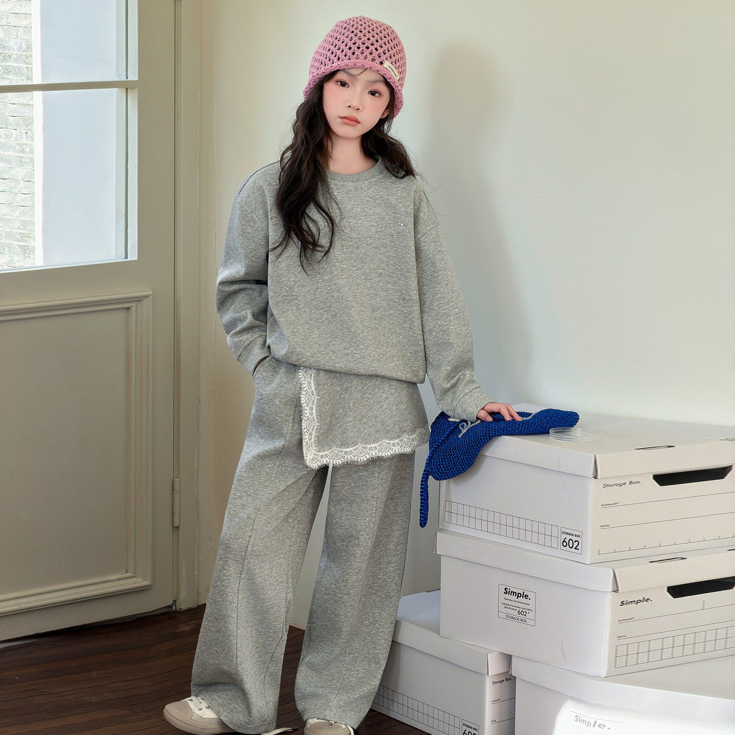 女孩儿童搭大童新款运动套装春装女童穿2026韩系休闲阔腿裤两件套
