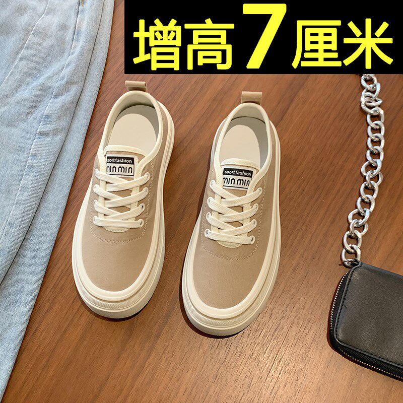 厚底帆布鞋女2024新款夏薄款内B增高黑色休闲板鞋轻便透气软底布
