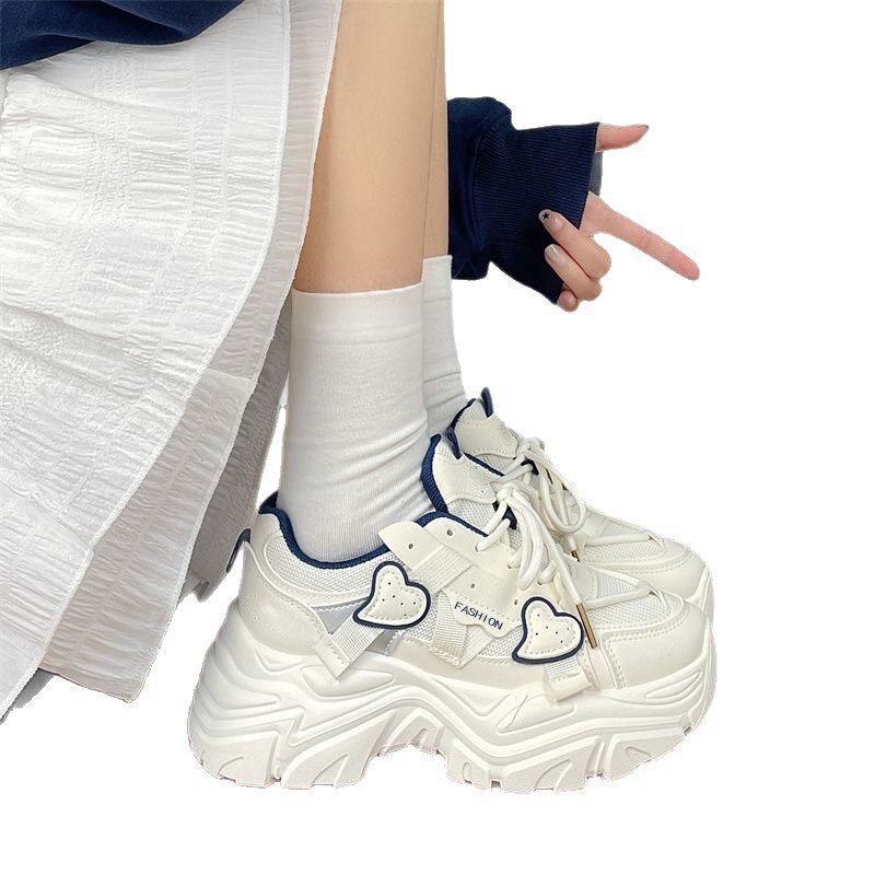 小白鞋女百搭2026春夏季新款网纱透气配裙子时尚网红学生老爹鞋子