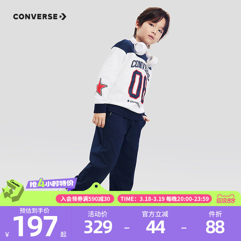 匡威童装男童套装2026春季新款中大童卫衣长裤两件套休闲学院风