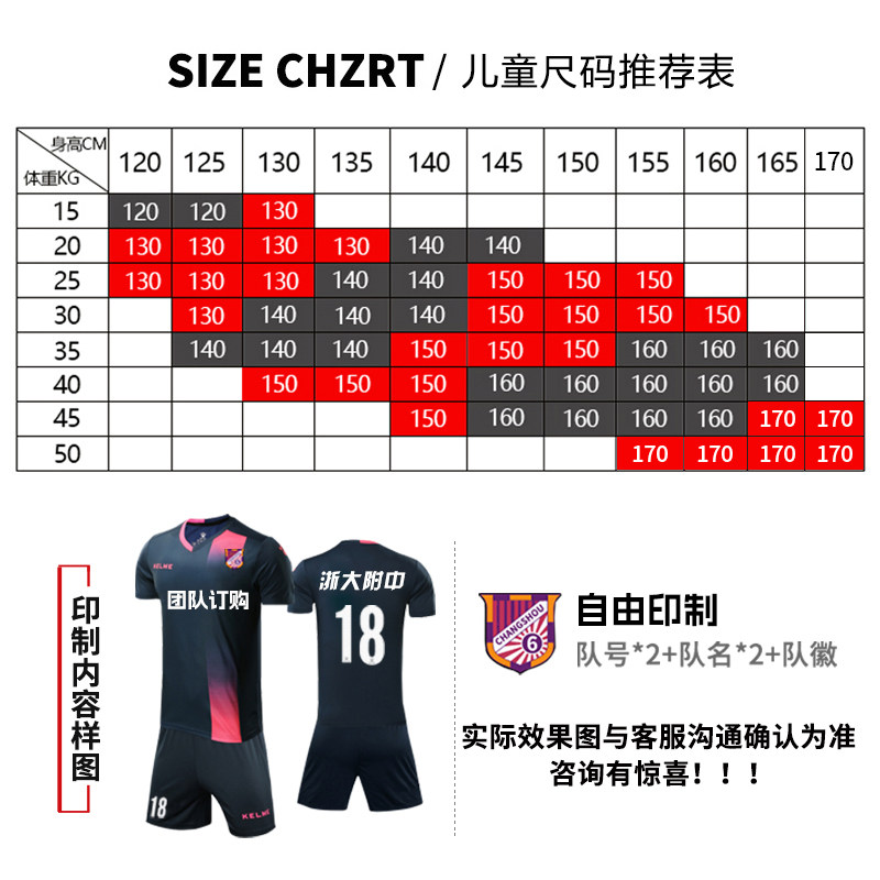 KELME卡尔美儿童足球服小学生套装青少年比赛训练透气定制球衣新