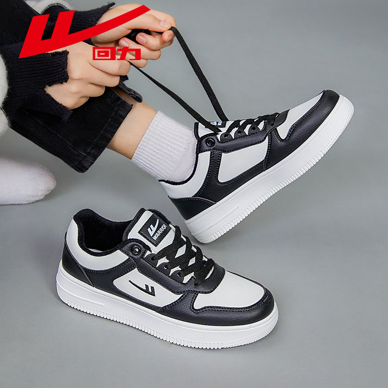 回力小白鞋女冬季加绒女鞋新款保暖棉鞋皮面百搭黑白熊猫二棉板鞋